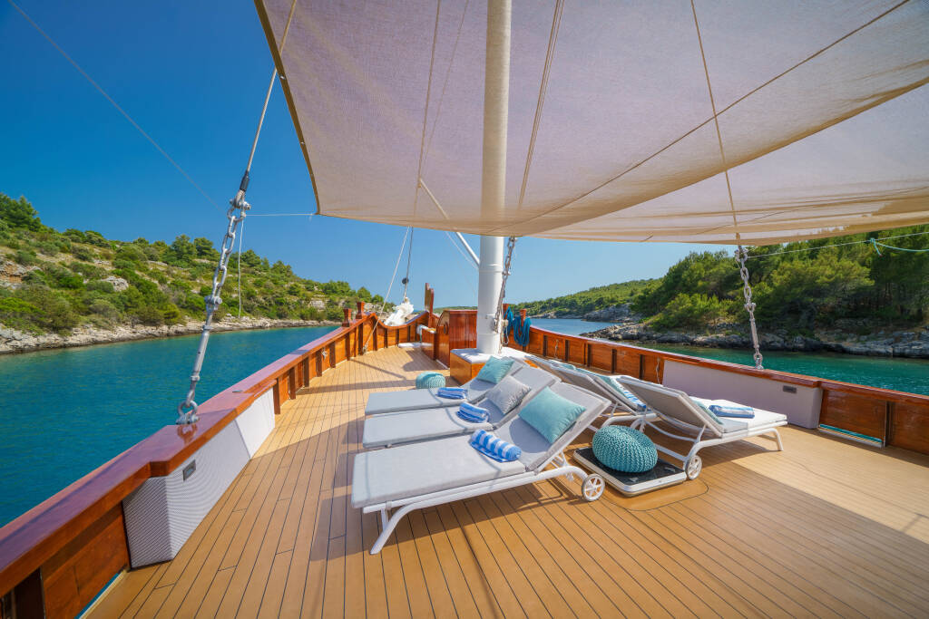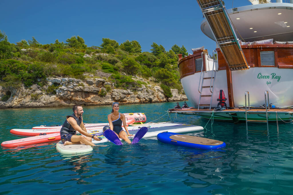 Gulet Green Ray Green Ray, Baujahr 2019, liegt im Split Harbour, Split & Umgebung, Kroatien vor Anker. Es verfügt über 6 Kabinen und bietet Platz für 12 Personen mit 6 Toiletten.