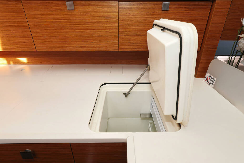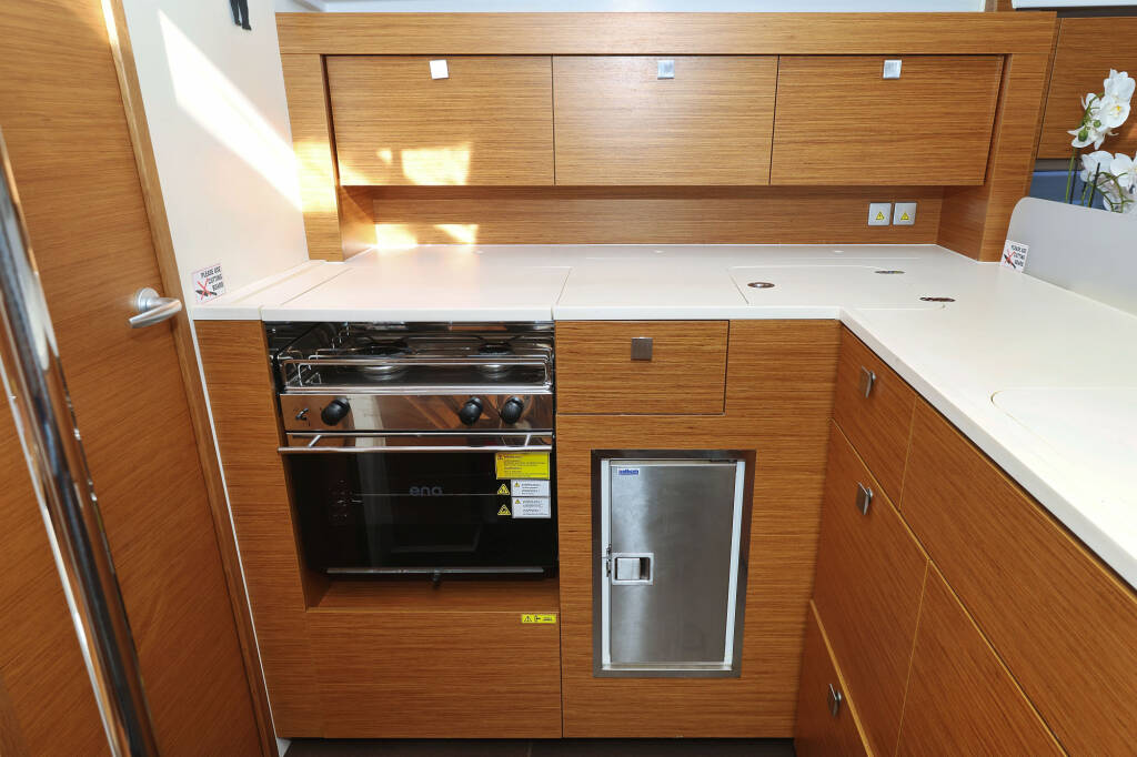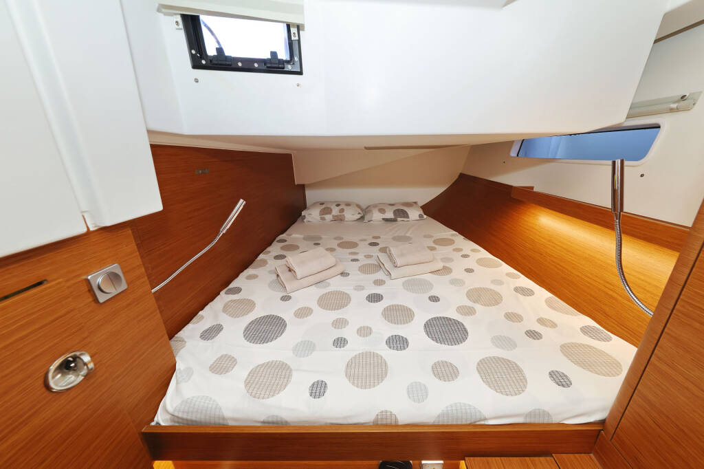 Segelyacht Hanse 410 Bela, Baujahr 2024, liegt im Marina Kornati, Biograd, Zadar & Umgebung, Kroatien vor Anker. Es verfügt über 3 Kabinen und bietet Platz für 6 + 2 Personen mit 2 Toiletten.
