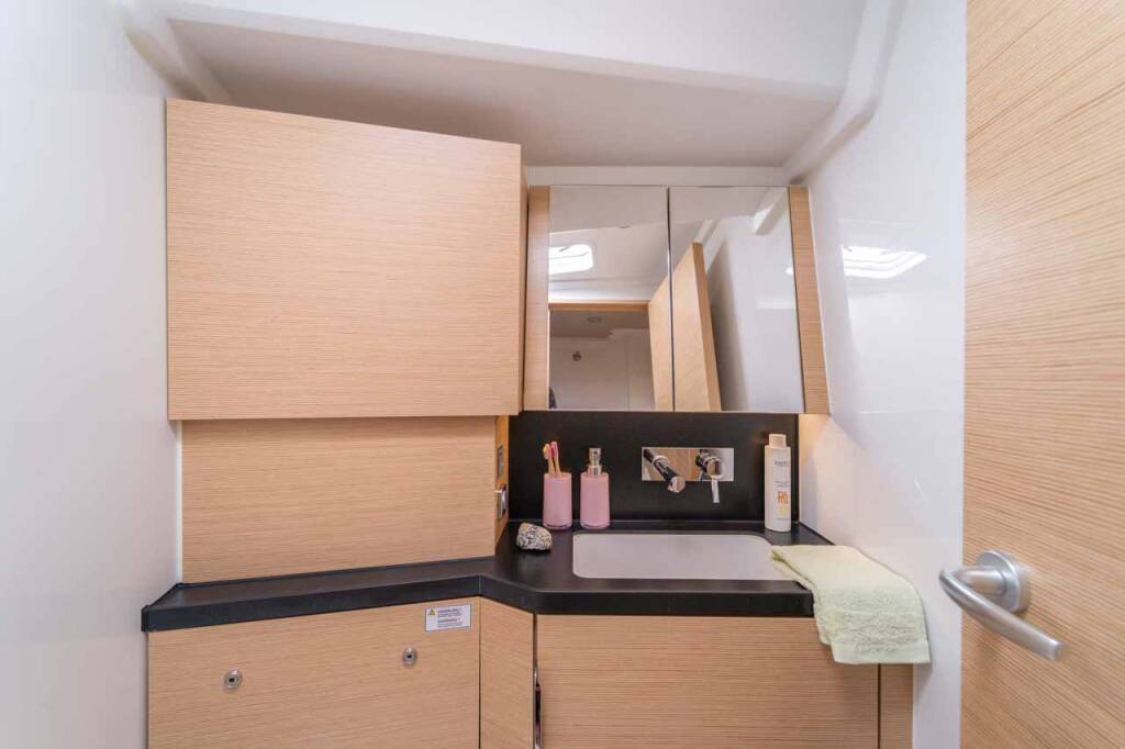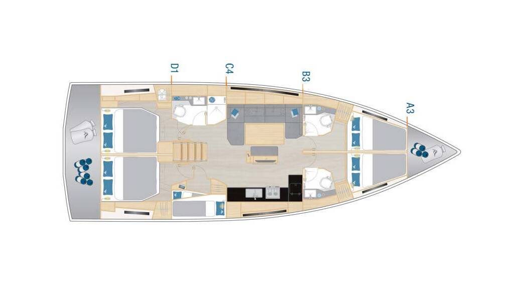 Segelyacht Hanse 460 Mare Morea, Baujahr 2025, liegt im Marina Mandalina, Sibenik, Sibenik & Umgebung, Kroatien vor Anker. Es verfügt über 5 Kabinen und bietet Platz für 10 + 2 Personen mit 3 Toiletten.