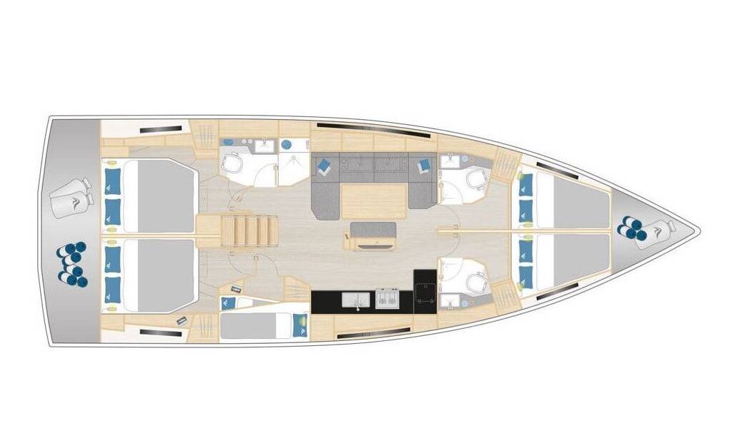 Segelyacht Hanse 460 Riesling, Baujahr 2024, liegt im Trogir, Yachtclub Seget (Marina Baotić), Split & Umgebung, Kroatien vor Anker. Es verfügt über 5 Kabinen und bietet Platz für 10 + 1 Personen mit 3 Toiletten.