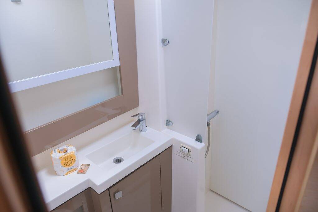 Katamaran Helia 44 Altair, Baujahr 2018, liegt im St. Vincent & Grenadines, Blue Lagoon Marina, St. Vincent, Karibik vor Anker. Es verfügt über 4 Kabinen und bietet Platz für 8 Personen mit 4 Toiletten.