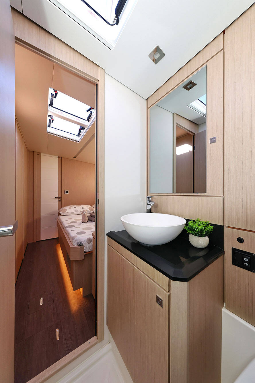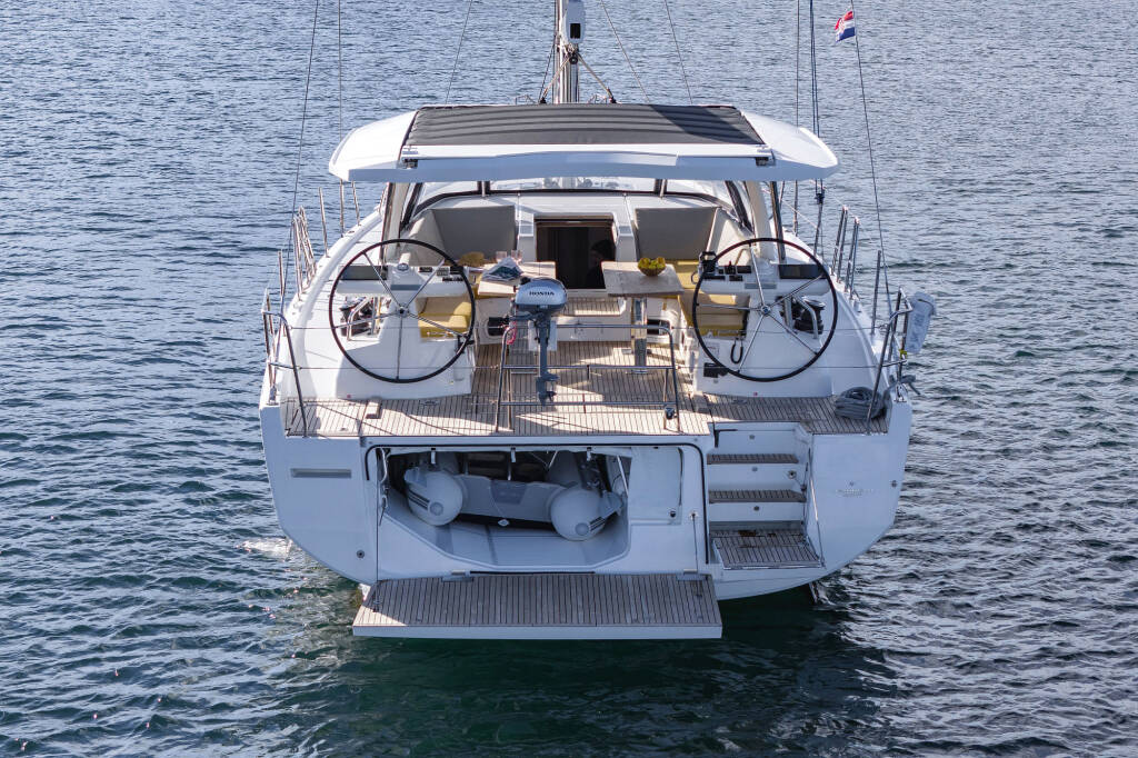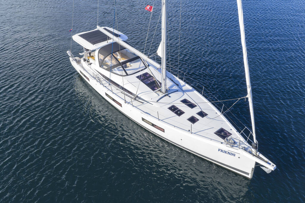 Segelyacht Jeanneau 60 Friends, Baujahr 2023, liegt im Trogir, Yachtclub Seget (Marina Baotić), Split & Umgebung, Kroatien vor Anker. Es verfügt über 4 + 1 Kabinen und bietet Platz für 9 + 2 Personen mit 4 + 1 Toiletten.