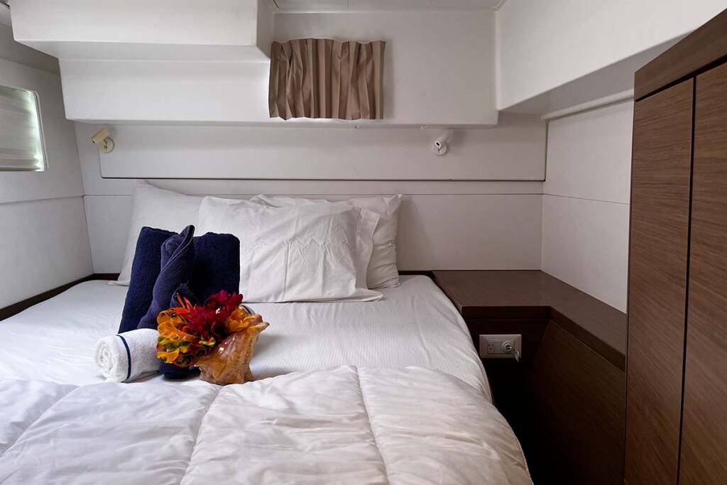 (for charters up to max 3 guests, one person works as a skipper and cook) + provisioning, Crew on board must have their own toilets/ showers. If either a skipper or a hostess/cook is on board, 1 double cabin will be required for him/her. If both a skipper and a hostess/cook are on board, 1 double cabin and 1 forepeak cabin will be required for them. Exceptions exists for specific layouts, Sales Agents will provide more details about the different boat models - Jetzt zahlbar