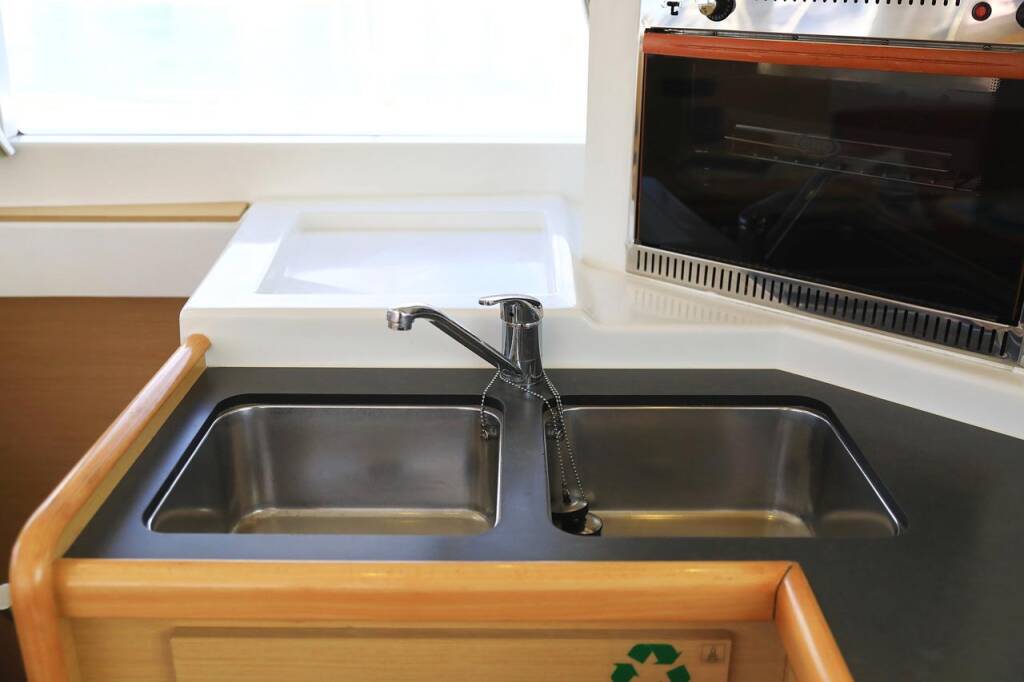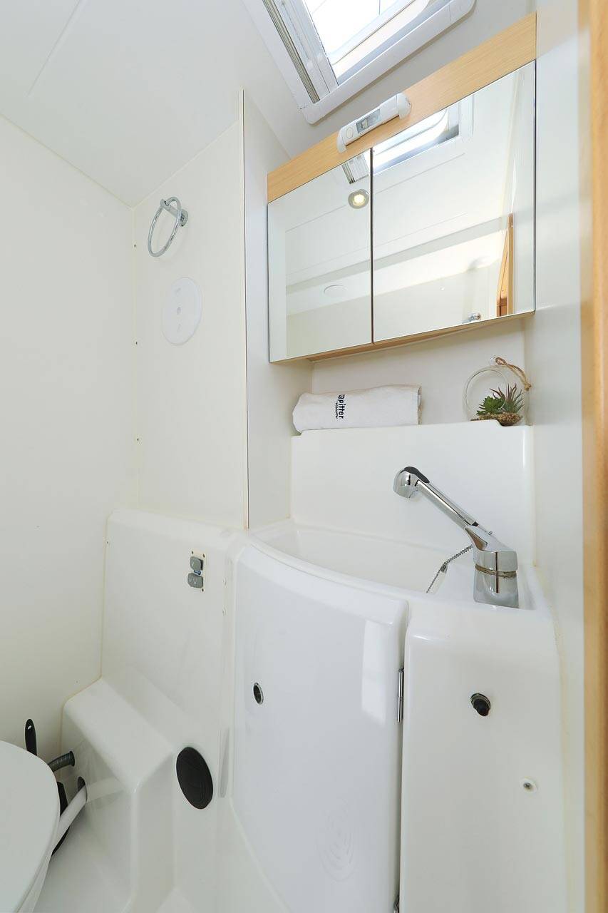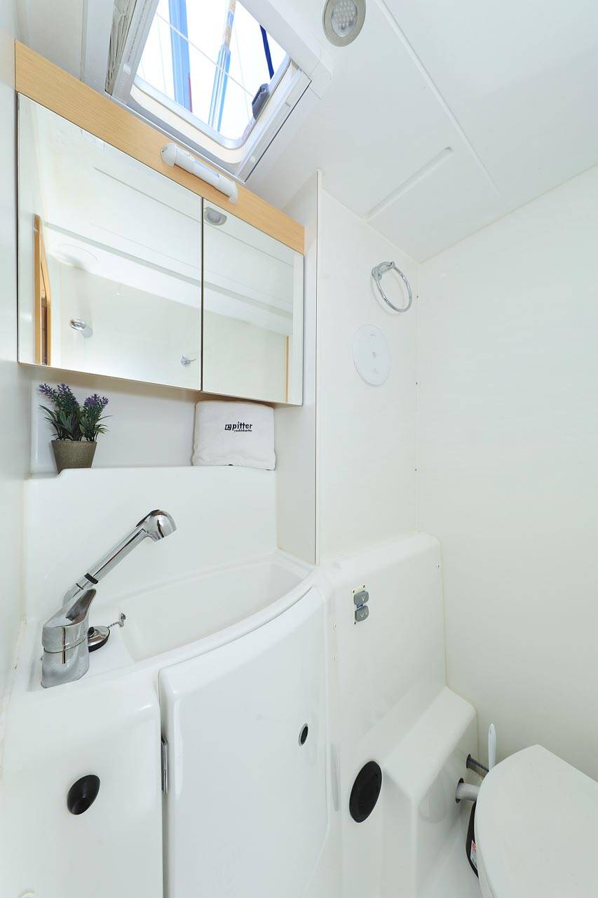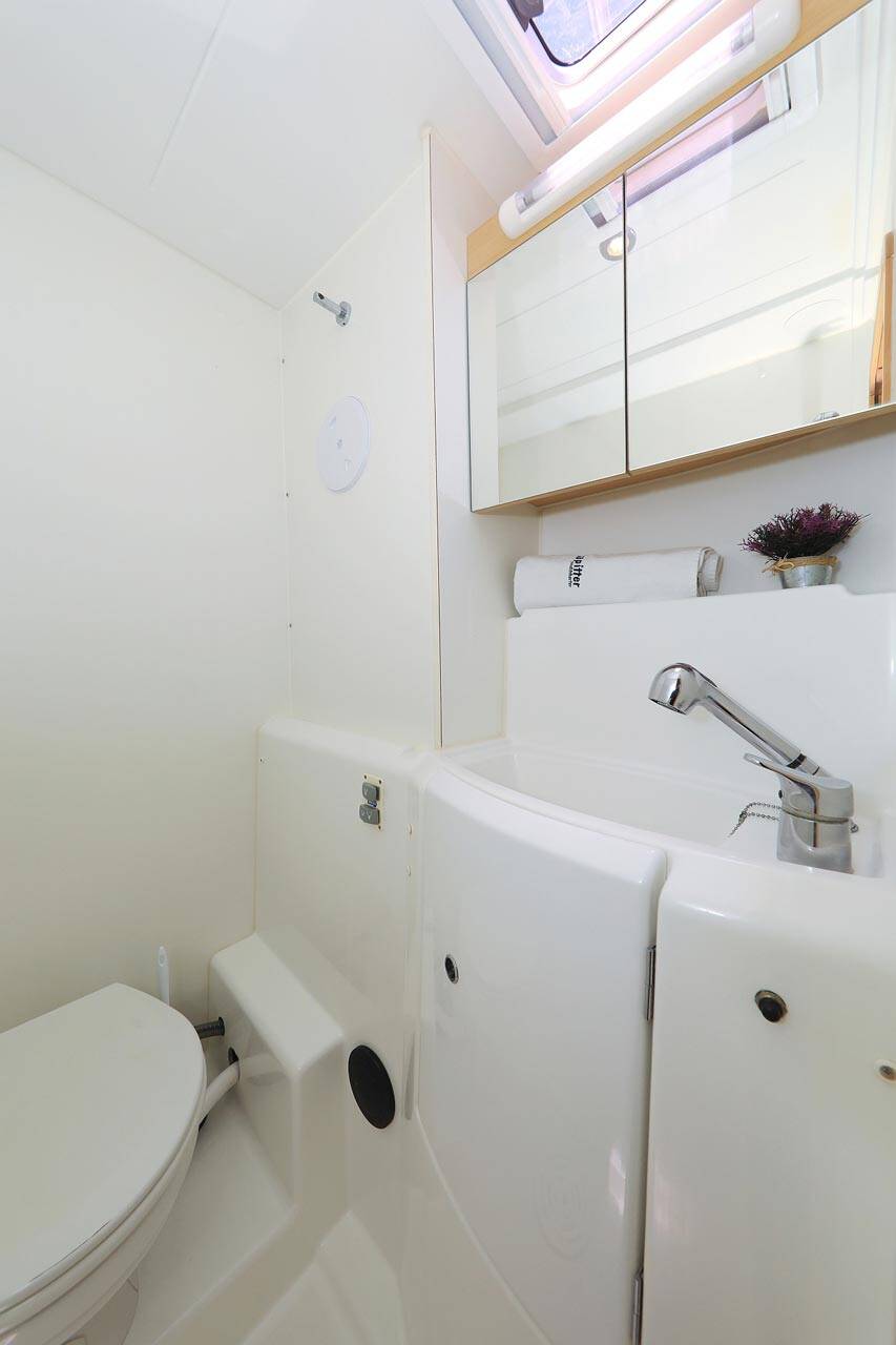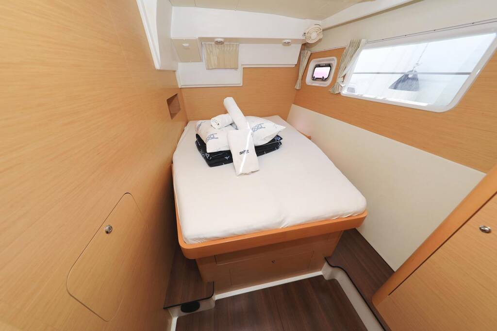 Katamaran Lagoon 400 Pagomo nayan, Baujahr 2012, liegt im ACI Marina Trogir, Split & Umgebung, Kroatien vor Anker. Es verfügt über 4 + 2 Kabinen und bietet Platz für 8 + 2 + 2 Personen mit 4 Toiletten.