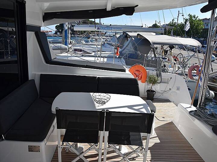 Katamaran Lagoon 42 Kit Cat, Baujahr 2020, liegt im Athens, Alimos marina, Athens area/Saronic/Peloponese, Griechenland vor Anker. Es verfügt über 4 + 2 Kabinen und bietet Platz für 8 + 1 + 2 Personen mit 4 + 1 Toiletten.