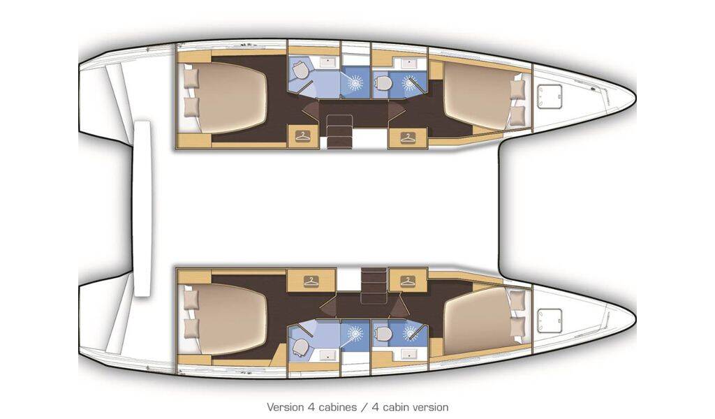 Katamaran Lagoon 42 Poseidon, Baujahr 2021, liegt im Marina Kremik, Primosten, Sibenik & Umgebung, Kroatien vor Anker. Es verfügt über 4 + 2 Kabinen und bietet Platz für 8 + 2 + 2 Personen mit 4 Toiletten.