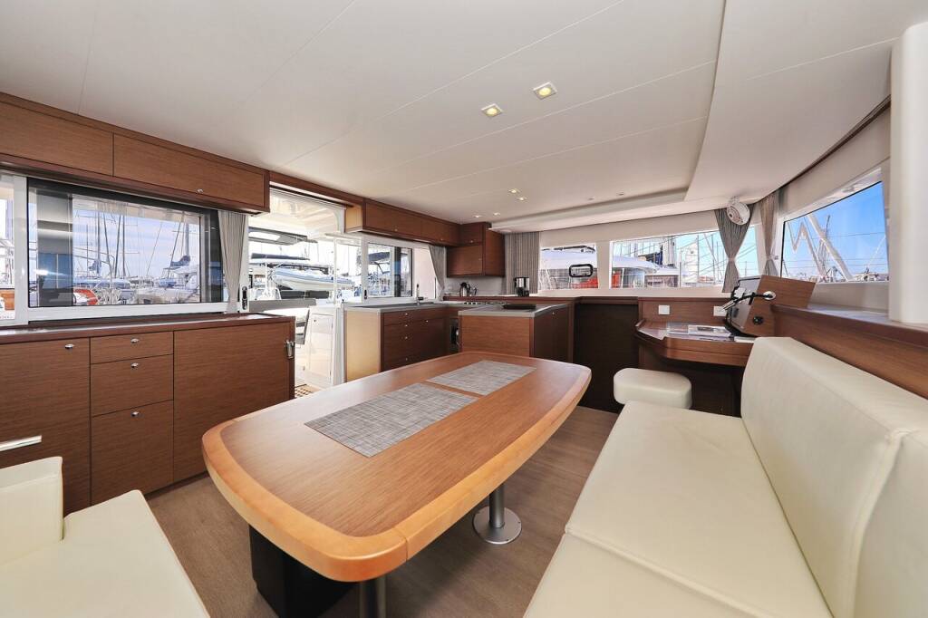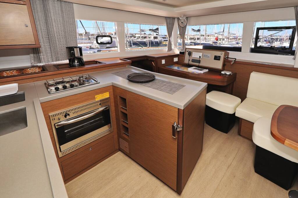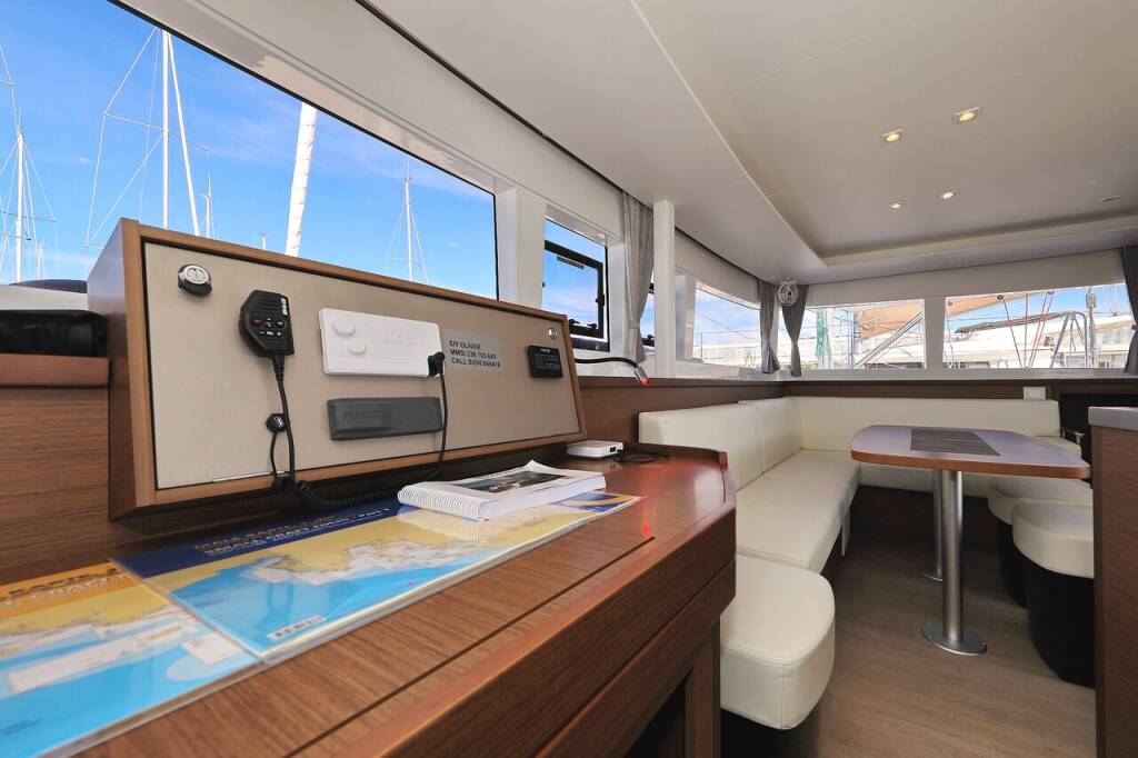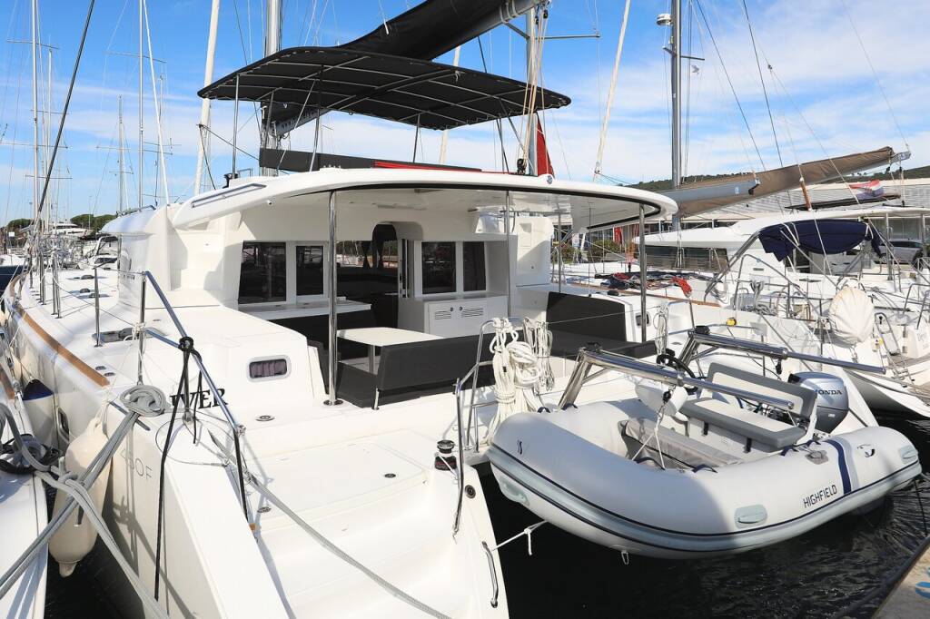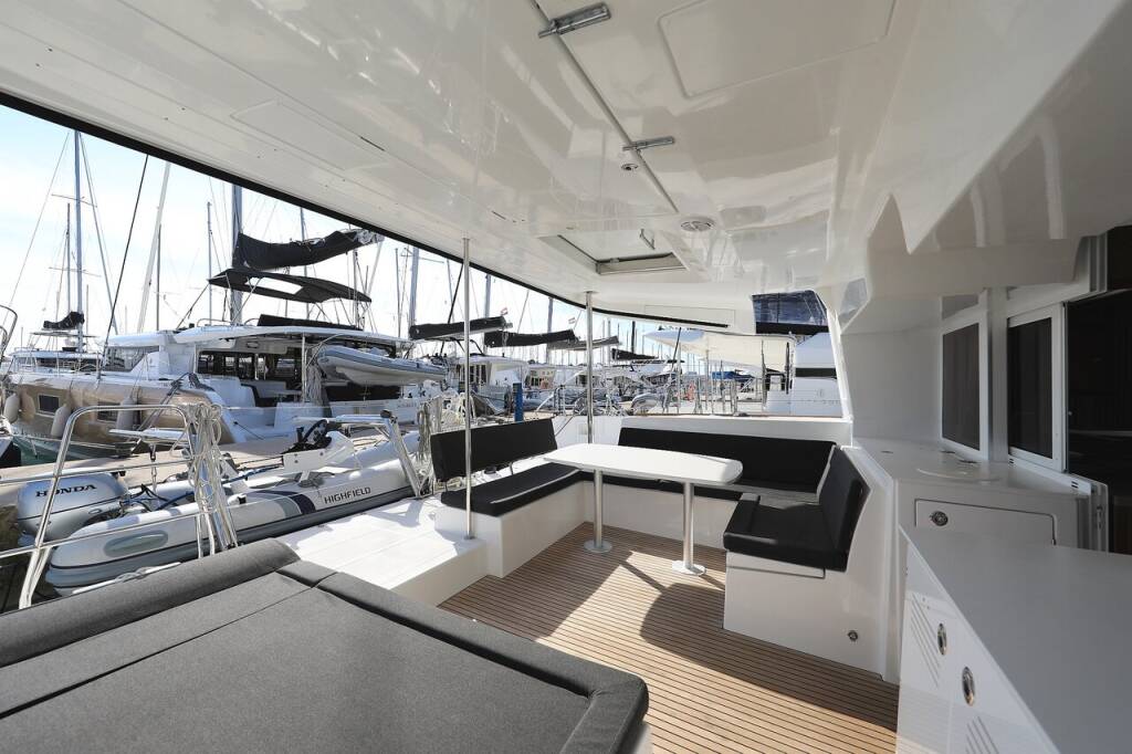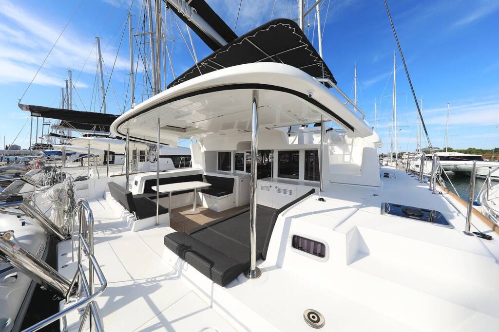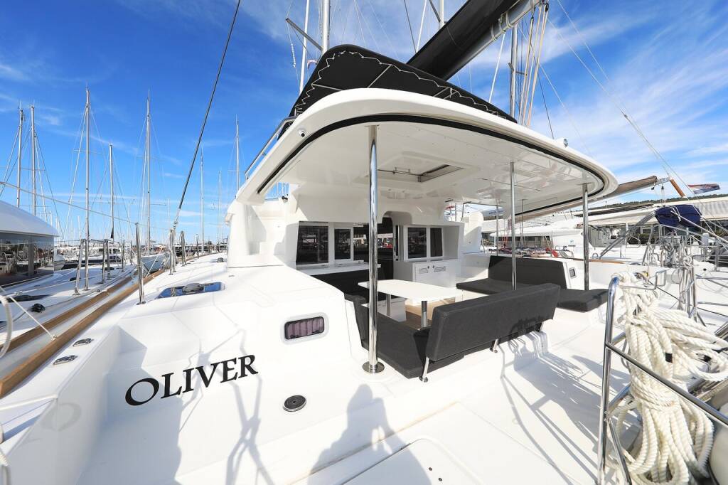Katamaran Lagoon 450 F Oliver, Baujahr 2020, liegt im Sukosan, D-Marin Dalmacija Marina, Zadar & Umgebung, Kroatien vor Anker. Es verfügt über 4 + 2 Kabinen und bietet Platz für 8 + 2 + 2 Personen mit 4 Toiletten.