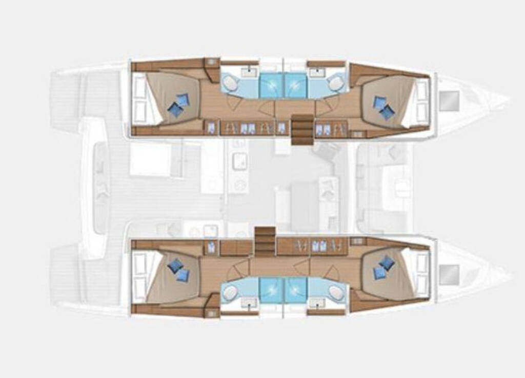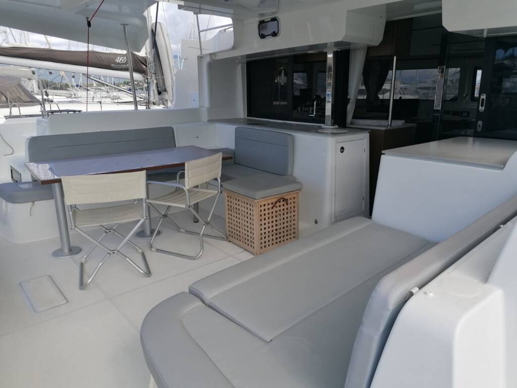 Katamaran Lagoon 46 Achilles, Baujahr 2020, liegt im Corfu, Gouvia Marina, Ionisches Meer, Griechenland vor Anker. Es verfügt über 4 + 2 Kabinen und bietet Platz für 8 + 2 Personen mit 4 + 1 Toiletten.