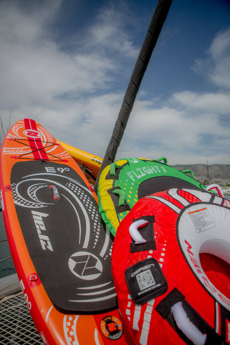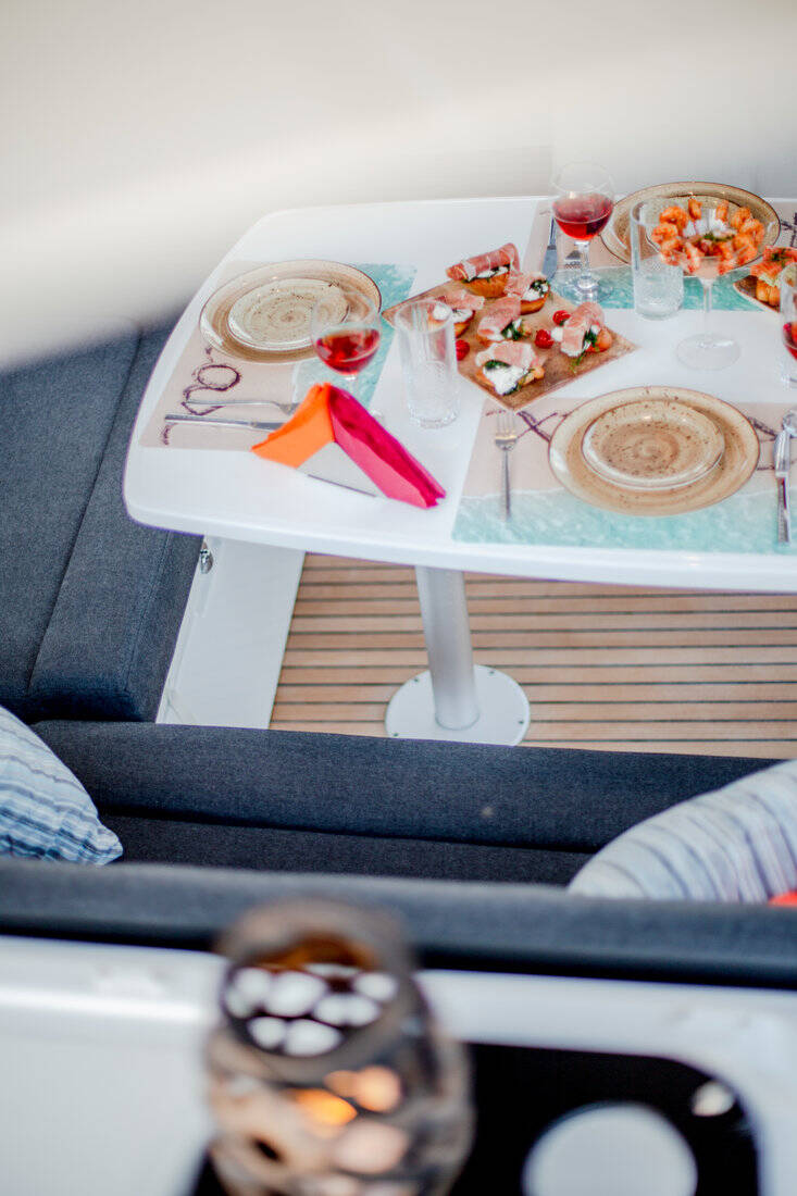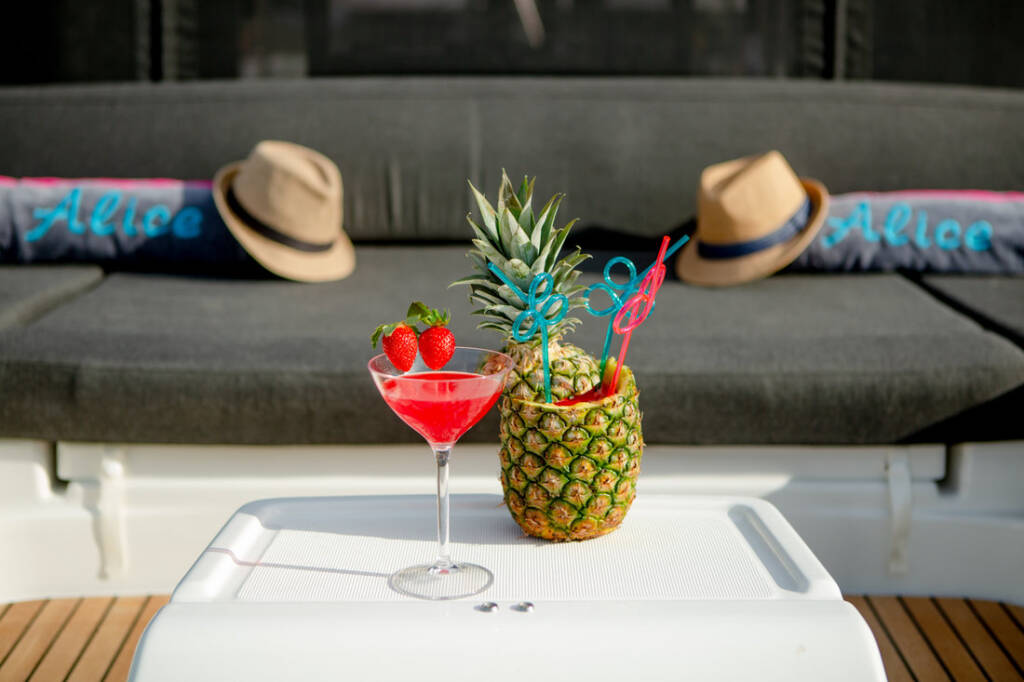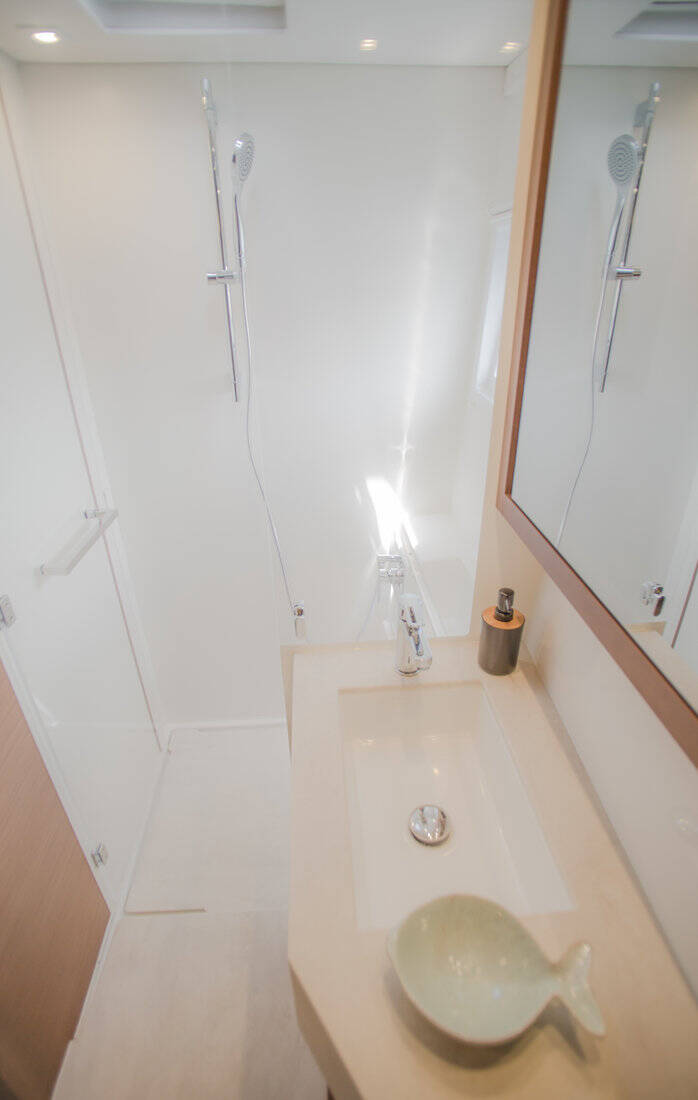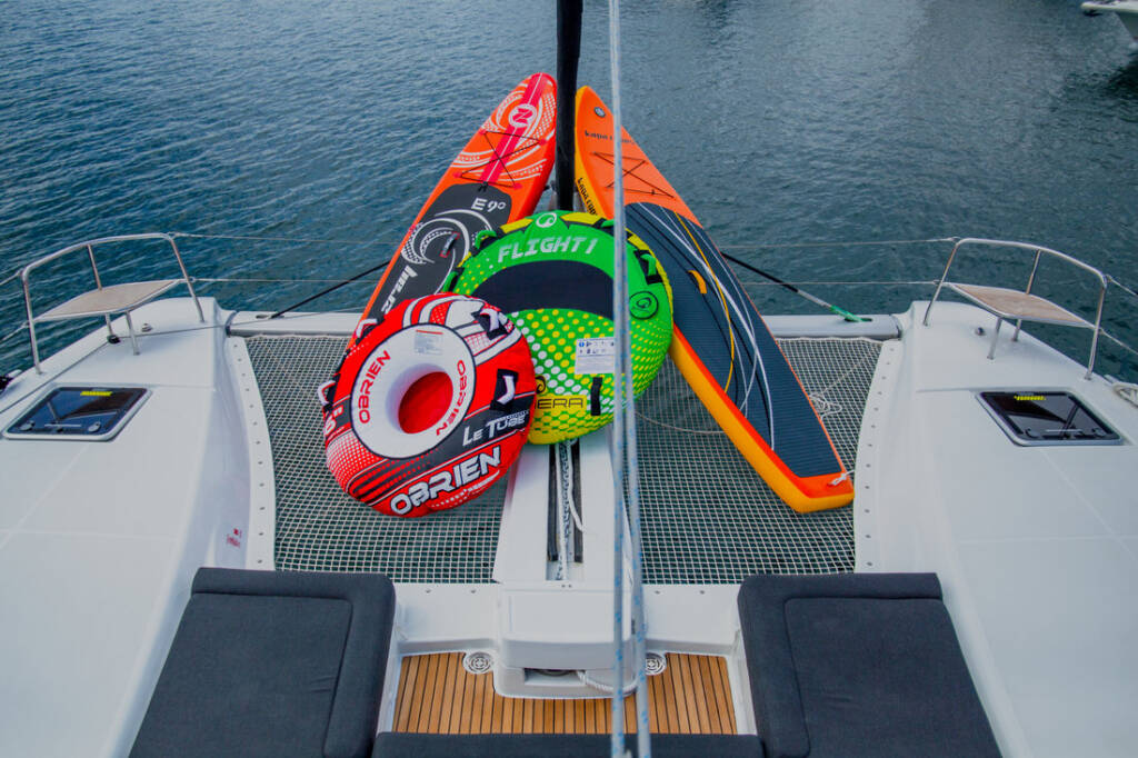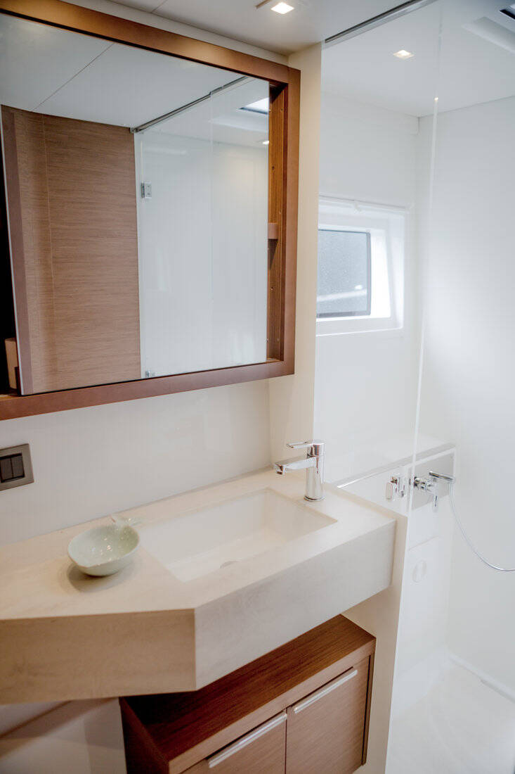 Katamaran Lagoon 46 Alice, Baujahr 2020, liegt im Athens, Alimos marina, Athens area/Saronic/Peloponese, Griechenland vor Anker. Es verfügt über 4 + 2 Kabinen und bietet Platz für 8 + 2 + 2 Personen mit 4 Toiletten.