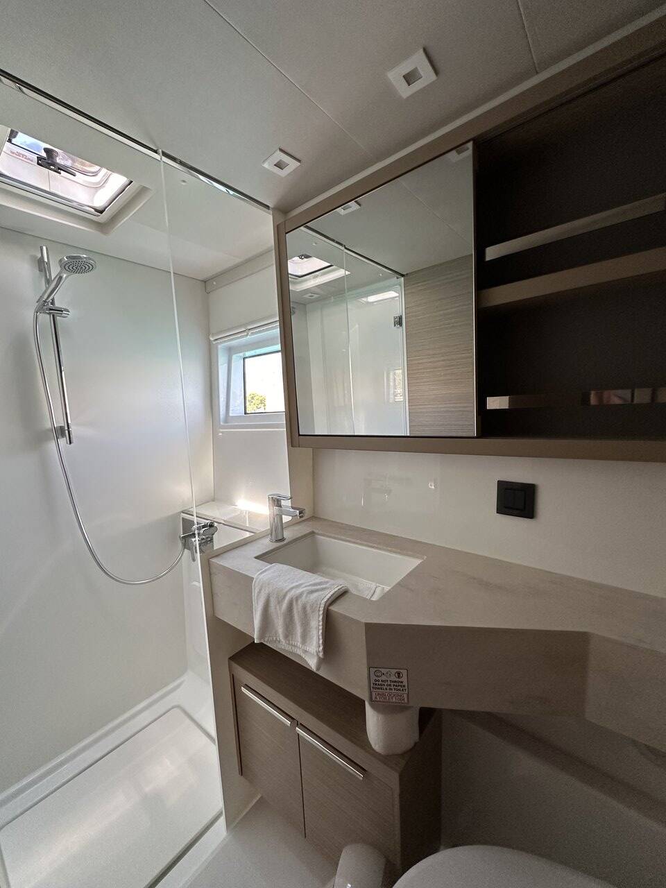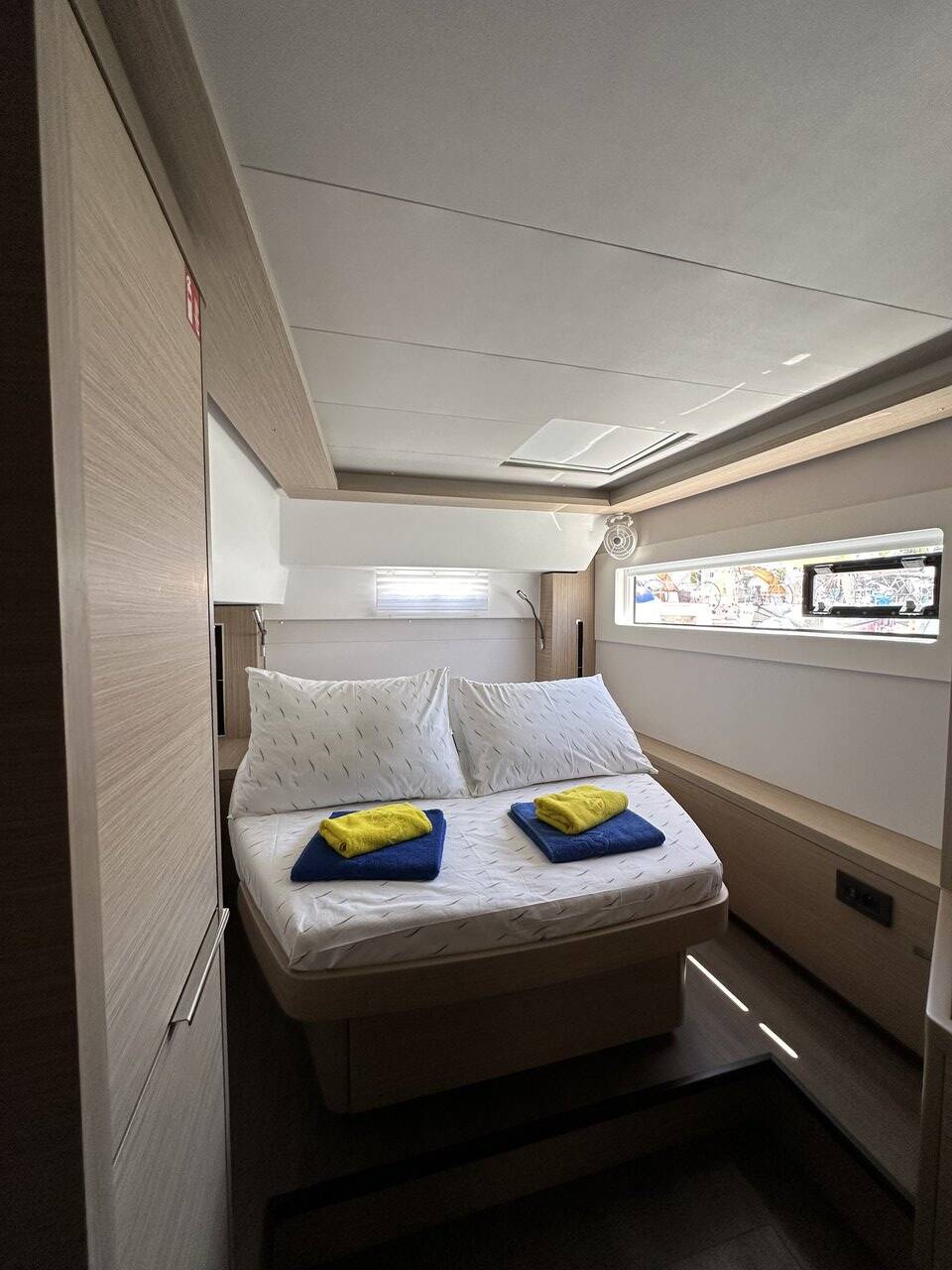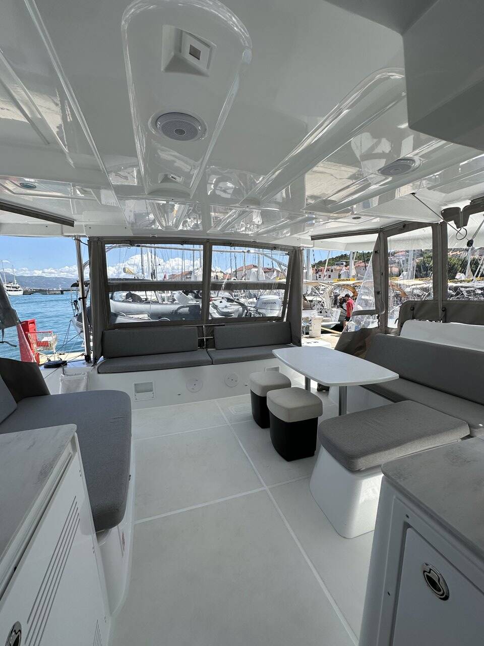 Katamaran Lagoon 46 Destiny Point, Baujahr 2024, liegt im ACI Marina Trogir, Split & Umgebung, Kroatien vor Anker. Es verfügt über 4 + 2 Kabinen und bietet Platz für 8 + 2 + 2 Personen mit 4 Toiletten.