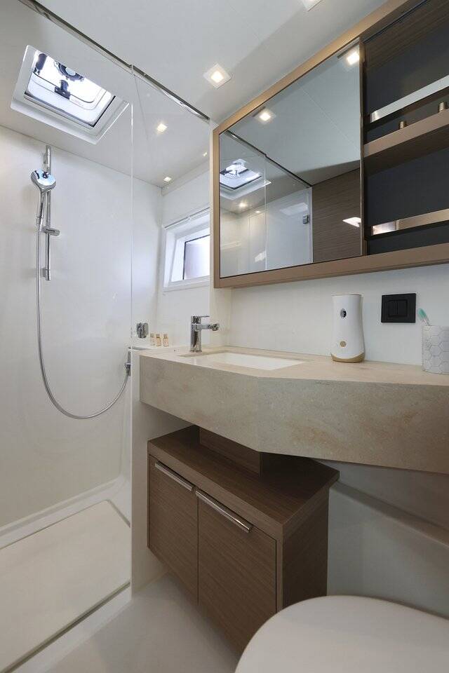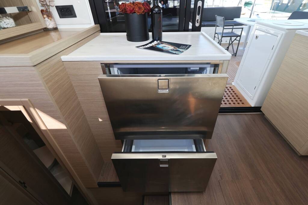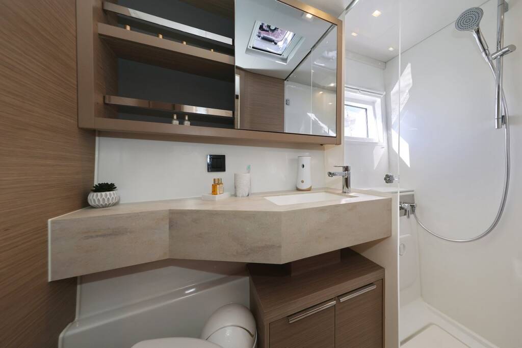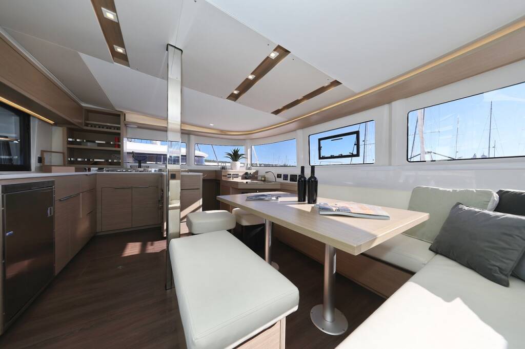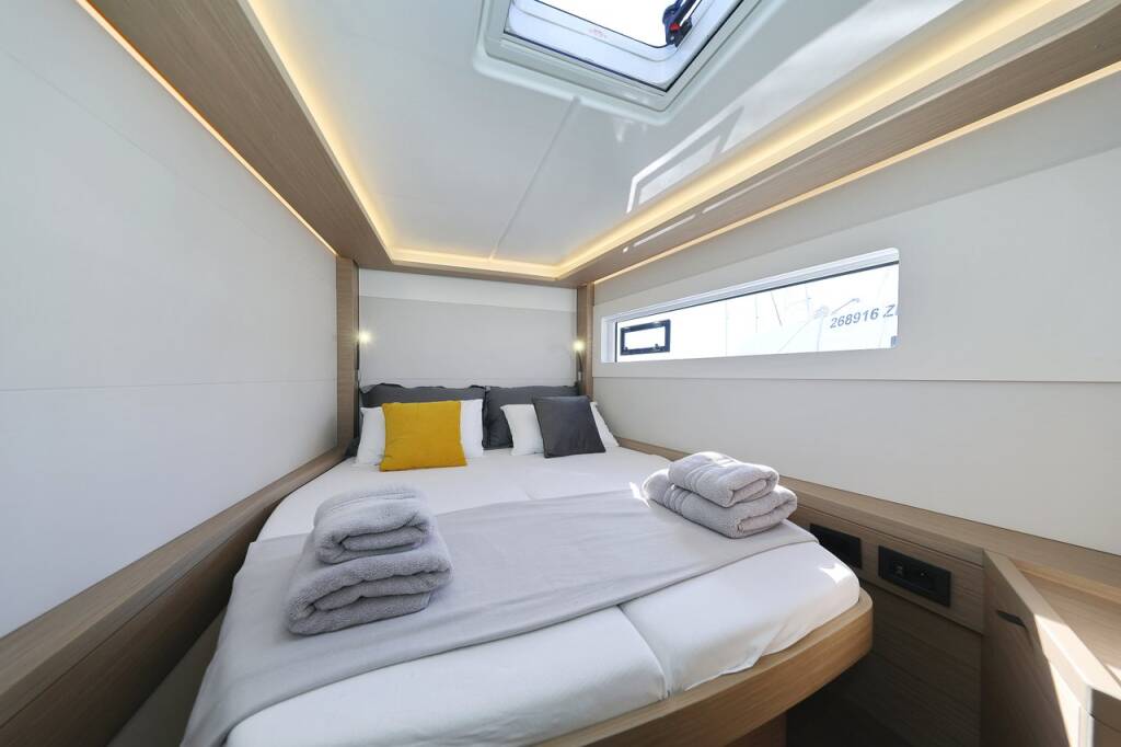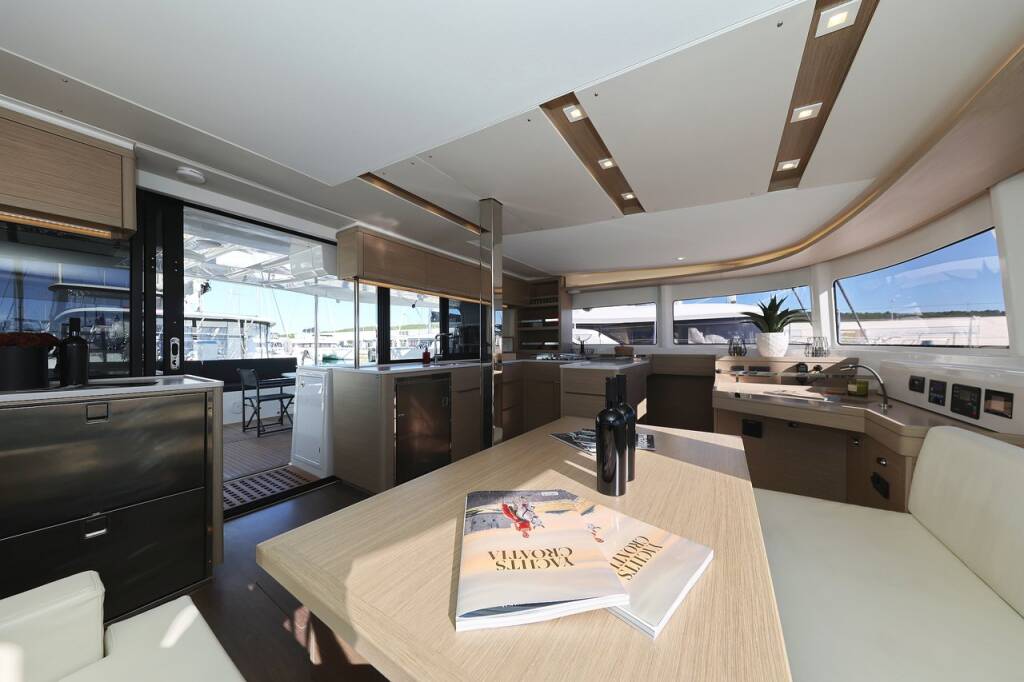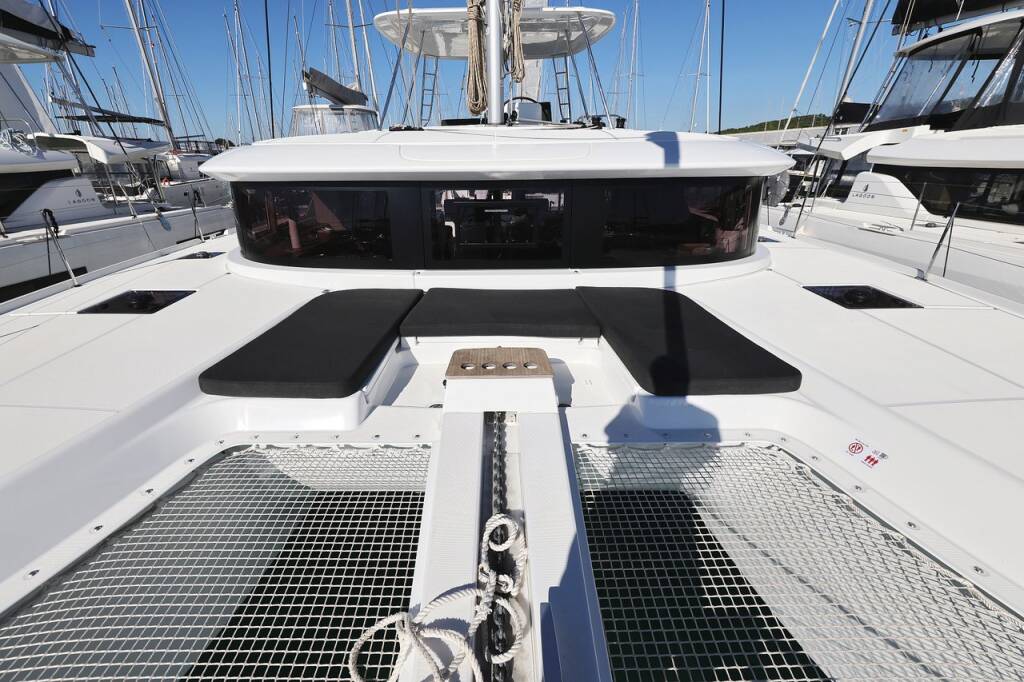 Katamaran Lagoon 46 Guilty Pleasure, Baujahr 2024, liegt im Sukosan, D-Marin Dalmacija Marina, Zadar & Umgebung, Kroatien vor Anker. Es verfügt über 4 + 2 Kabinen und bietet Platz für 8 + 2 + 2 Personen mit 4 Toiletten.