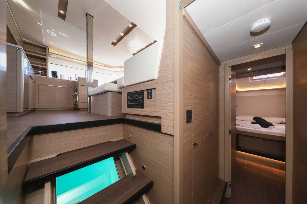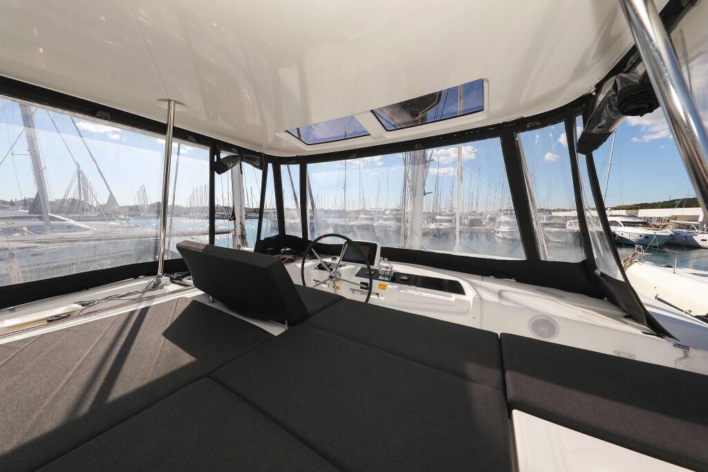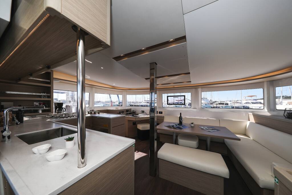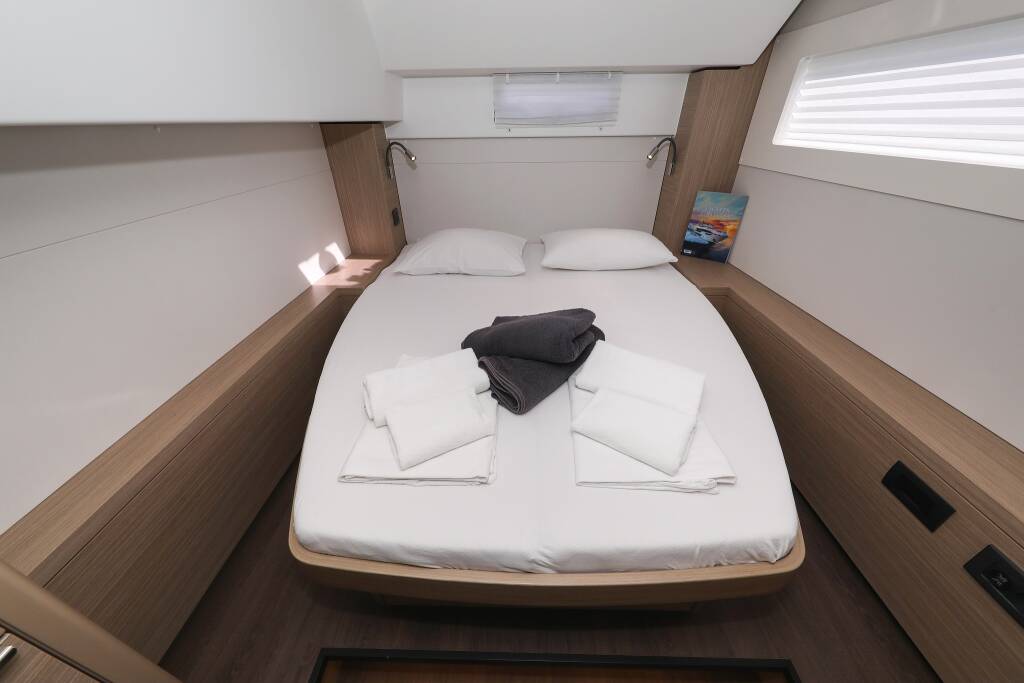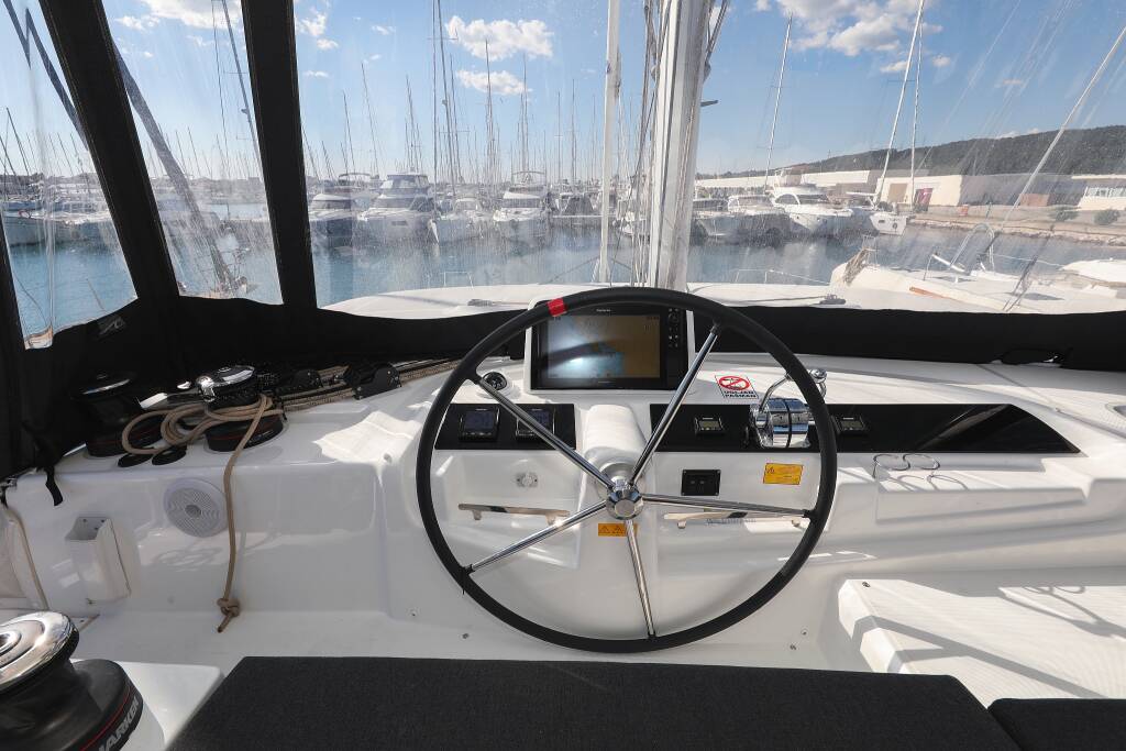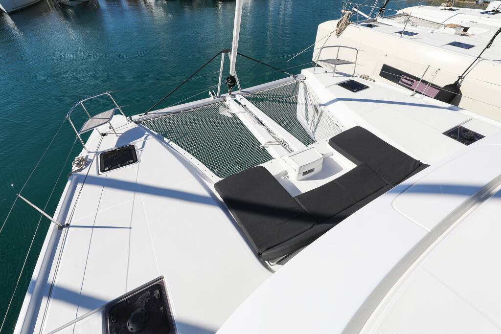 Katamaran Lagoon 46 Nuvola, Baujahr 2024, liegt im Sukosan, D-Marin Dalmacija Marina, Zadar & Umgebung, Kroatien vor Anker. Es verfügt über 4 + 2 Kabinen und bietet Platz für 8 + 2 + 2 Personen mit 4 Toiletten.