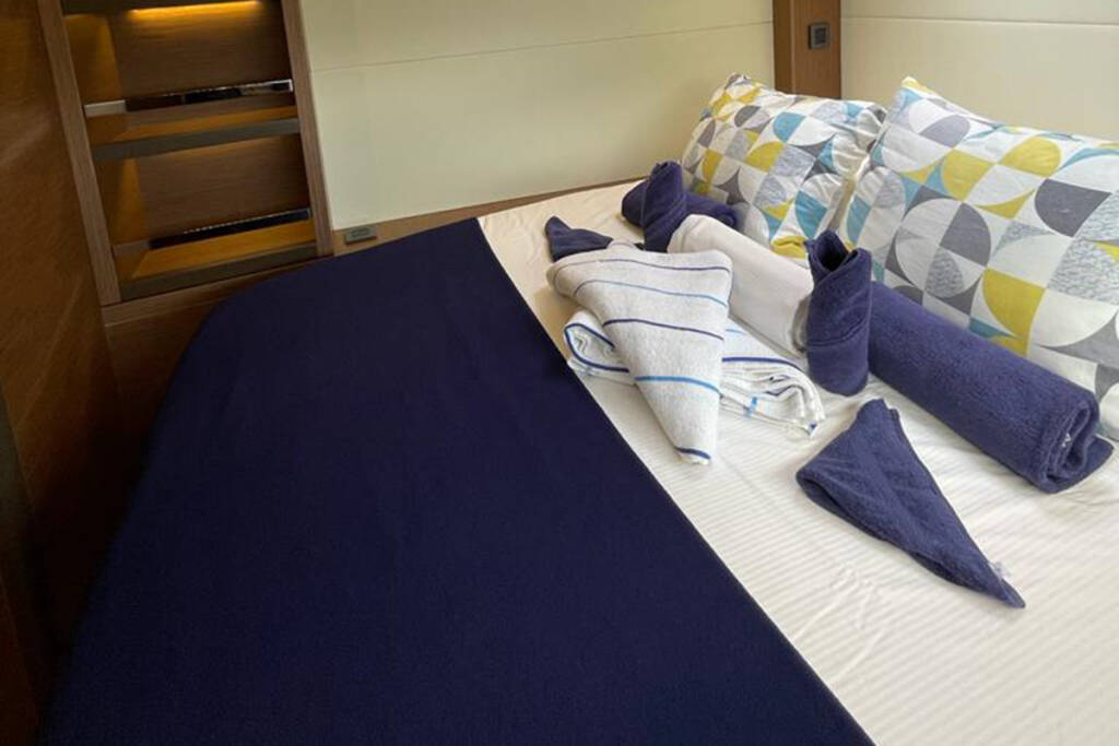 To be added upon client's price - OBLIGATORY - SEY Welcome package, final cleaning, bed sheets & towels, dinghy, outboard engine & fuel, propane gas, full water tanks, snorkelling equipment,WIFI with unlimited use. However, if the limit of 20GB per day is crossed, the internet speed is reduced for the rest of that day. Yacht Fuel is not included – the fuel tank will be full when your charter starts and you are responsible for topping off the fuel tank at the end of your charter. Security deposit is obligatory and is paid on spot in the base. - Jetzt zahlbar