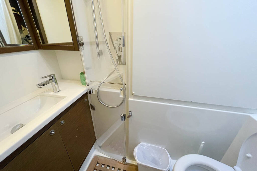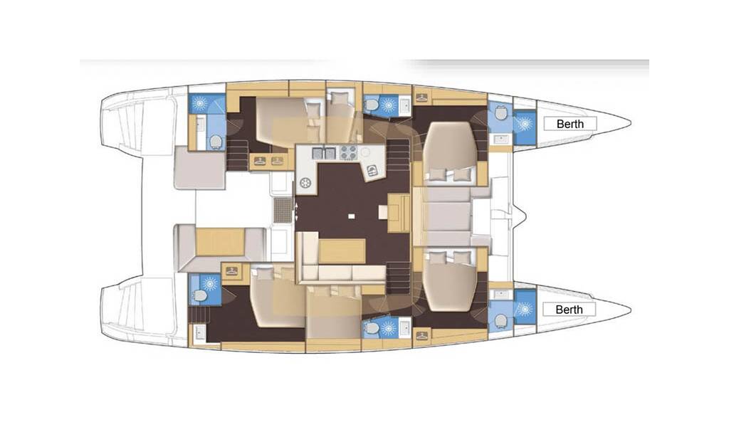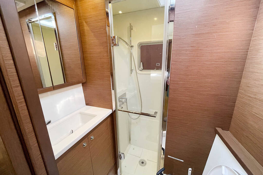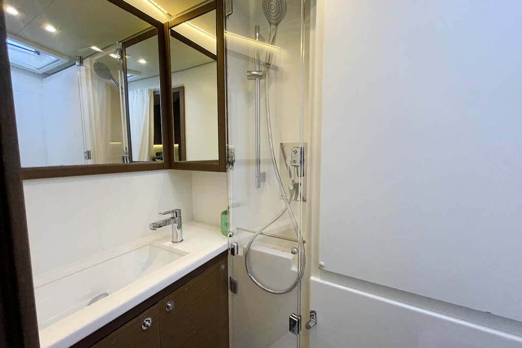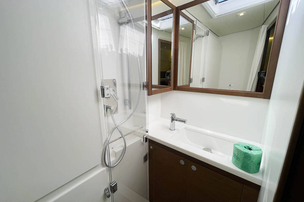 +provisioning ; Crew on board must have their own toilets/ showers. If either a skipper or a hostess/cook is on board, 1 double cabin will be required for him/her. If both a skipper and a hostess/cook are on board, 1 double cabin and 1 forepeak cabin will be required for them. Exceptions exists for specific layouts, Sales Agents will provide more details about the different boat models.