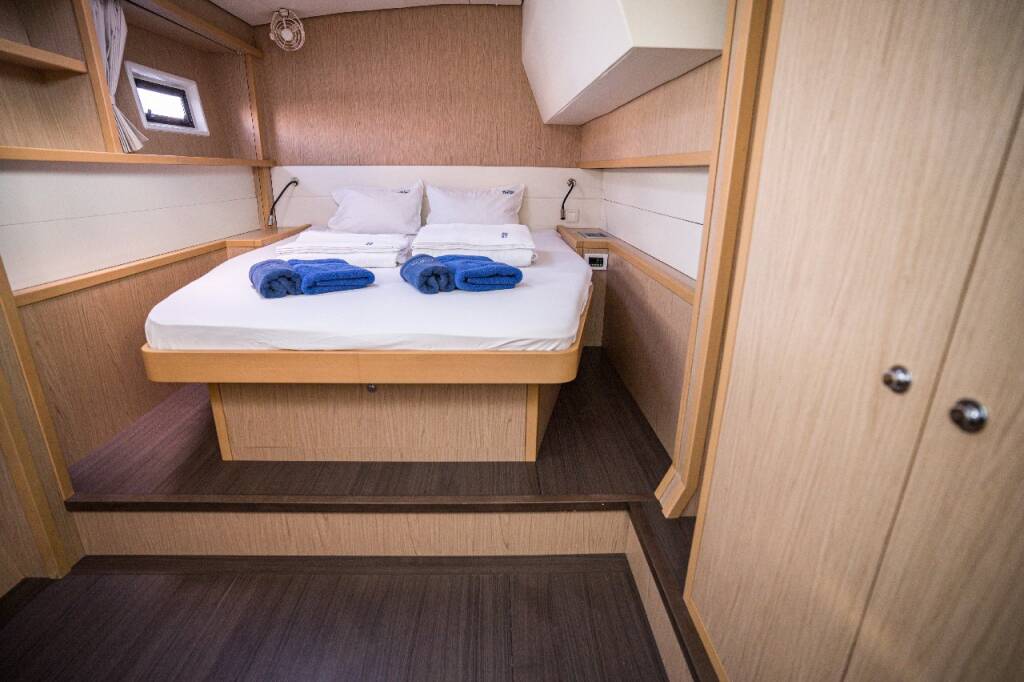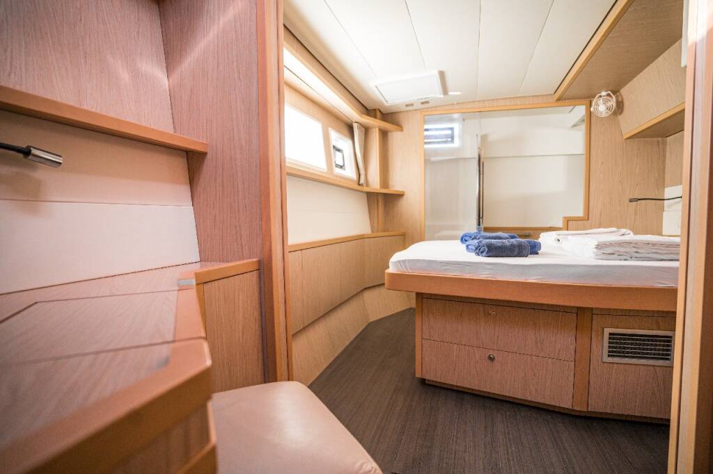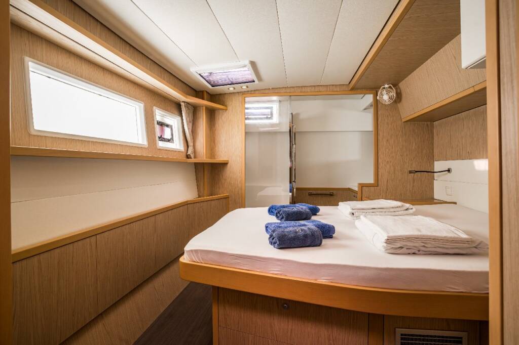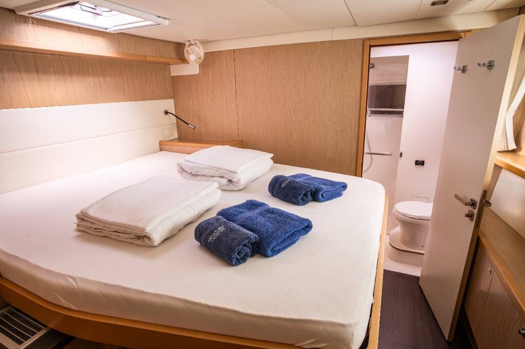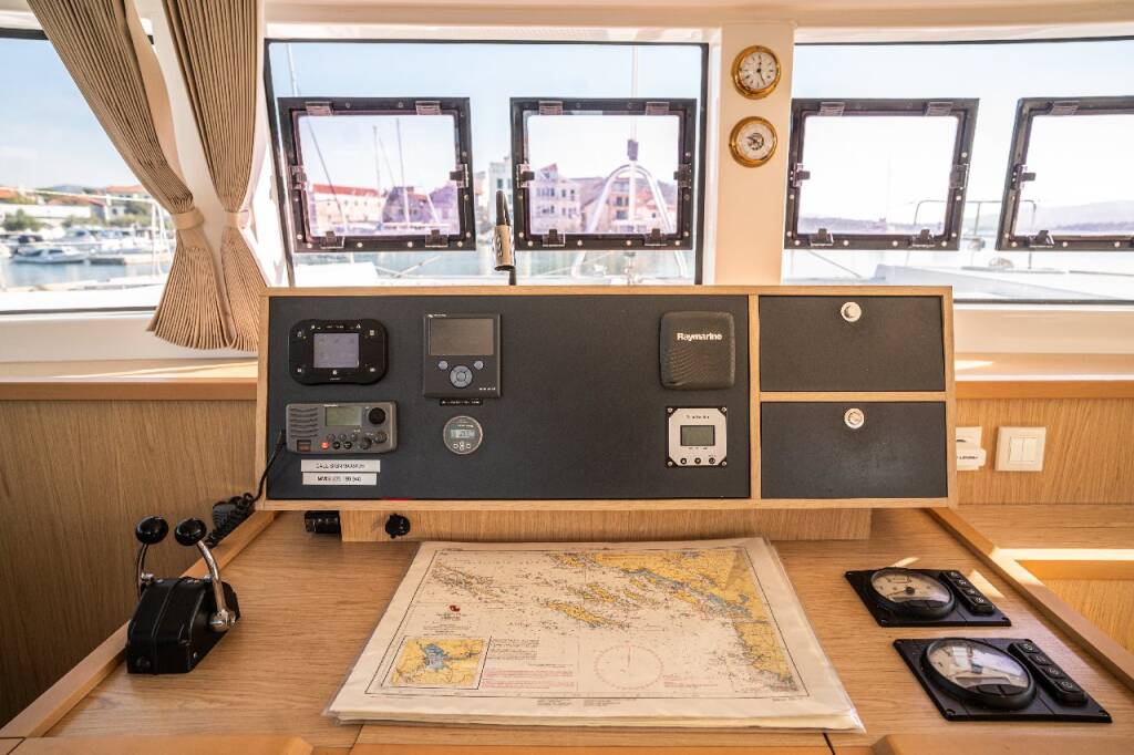 Katamaran Lagoon 52 F Jessy, Baujahr 2013, liegt im Marina Pirovac, Sibenik & Umgebung, Kroatien vor Anker. Es verfügt über 4 + 2 Kabinen und bietet Platz für 8 + 2 + 2 Personen mit 4 + 2 Toiletten.