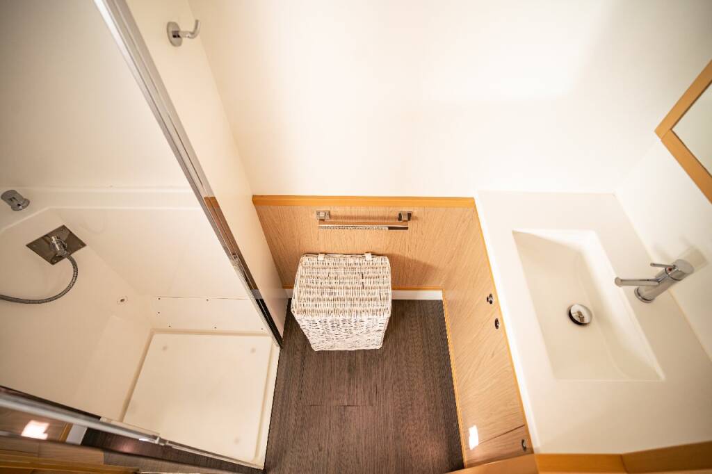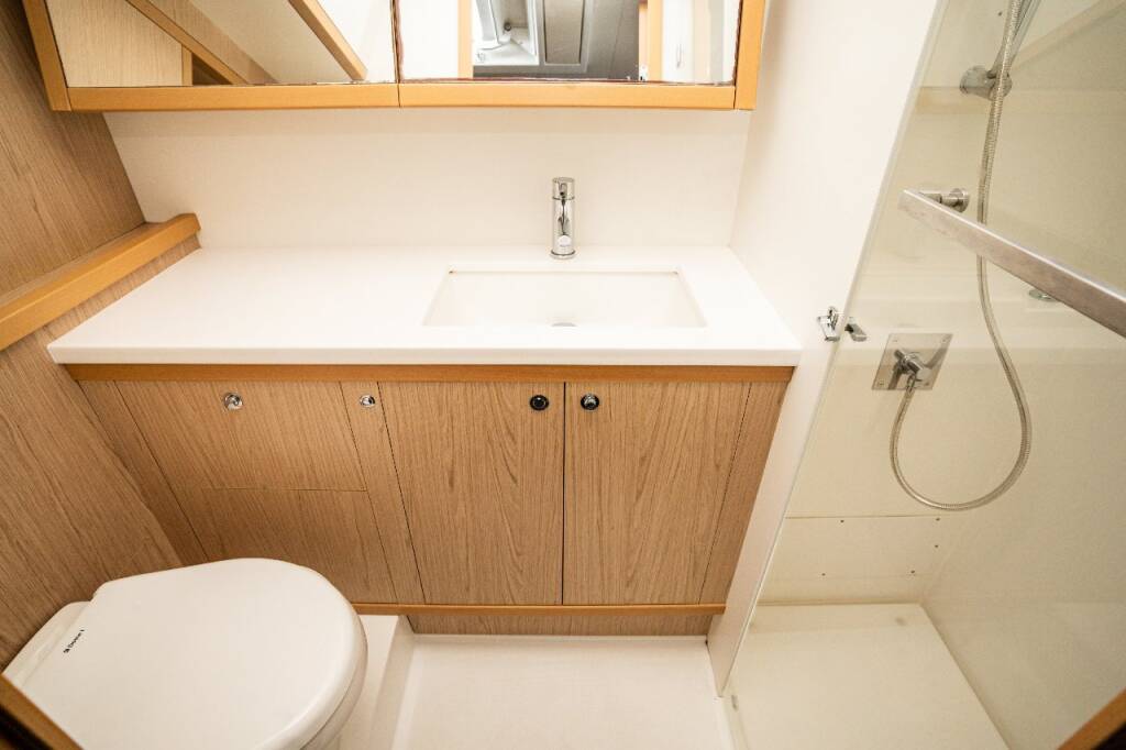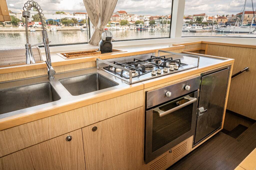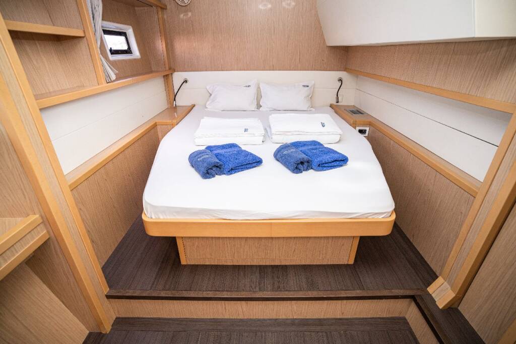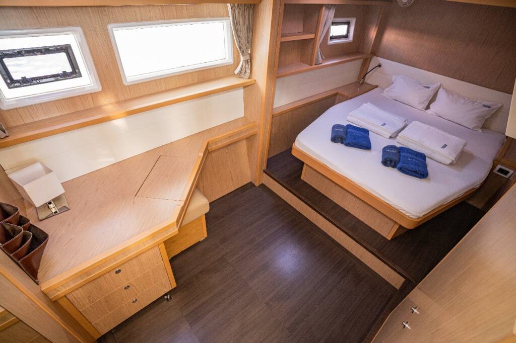 Katamaran Lagoon 52 F Jessy, Baujahr 2013, liegt im Marina Pirovac, Sibenik & Umgebung, Kroatien vor Anker. Es verfügt über 4 + 2 Kabinen und bietet Platz für 8 + 2 + 2 Personen mit 4 + 2 Toiletten.