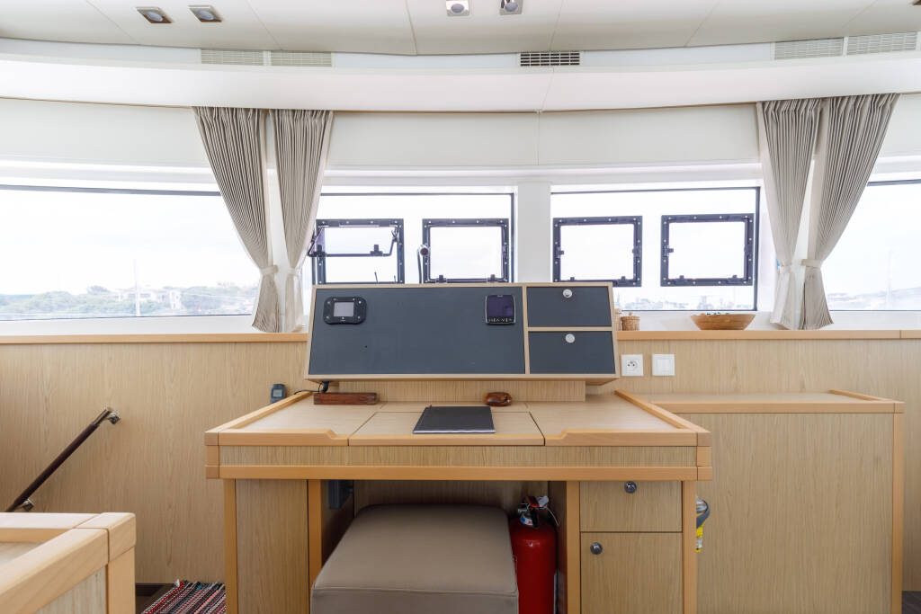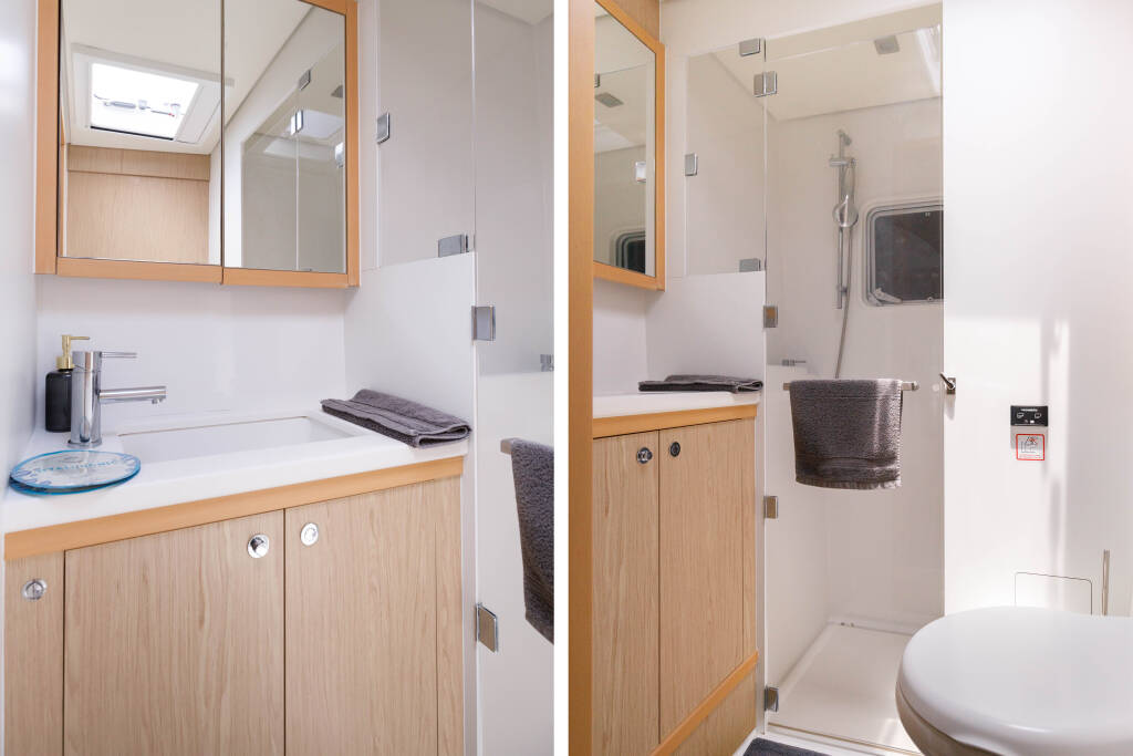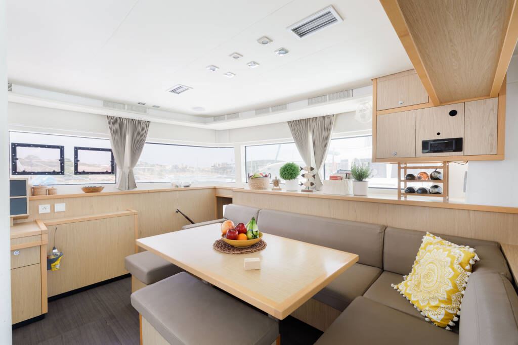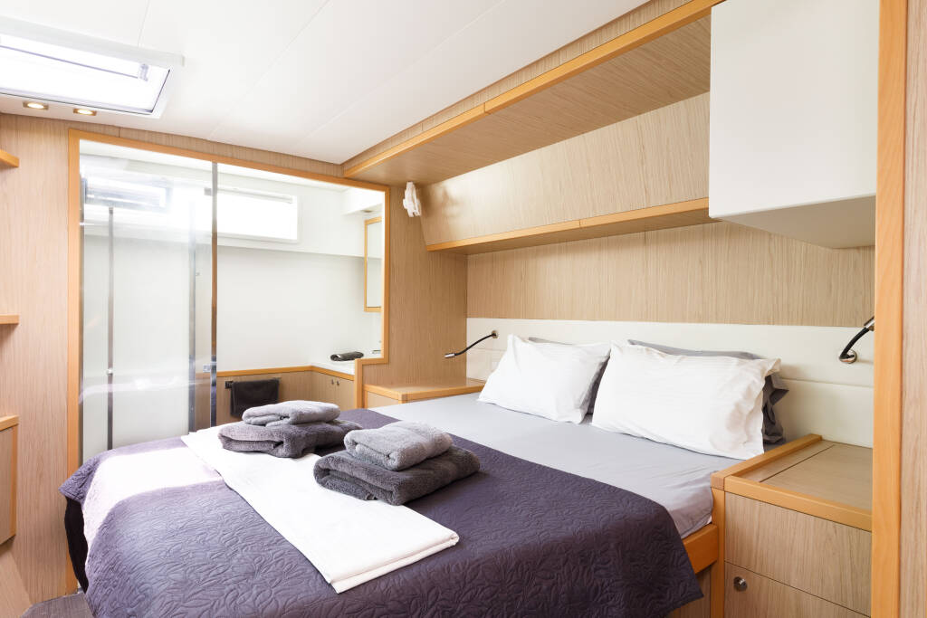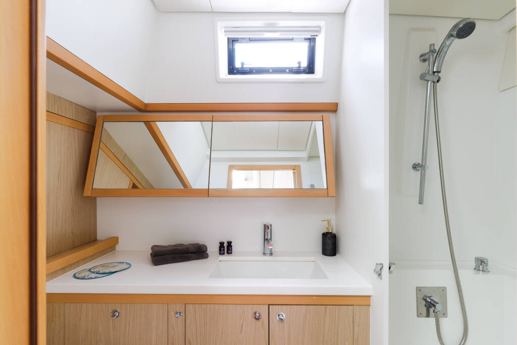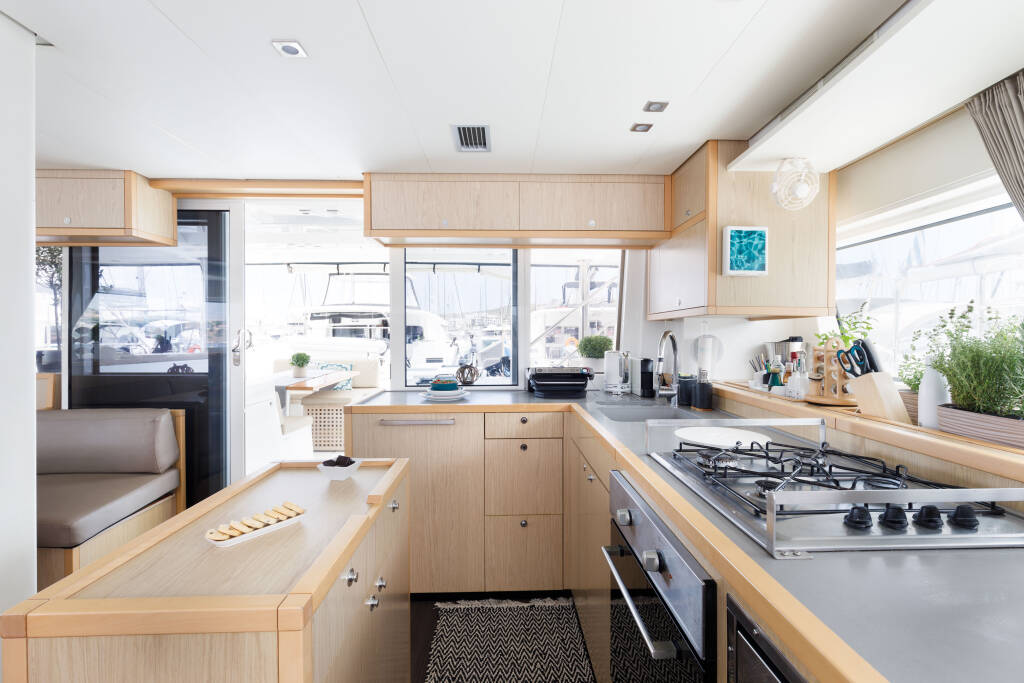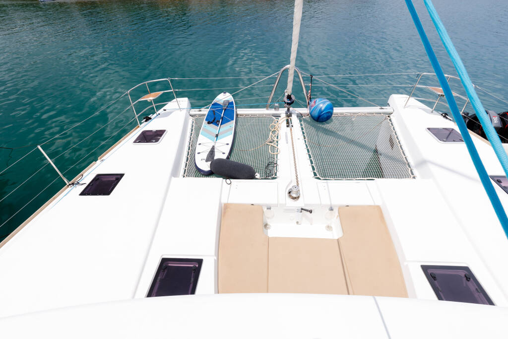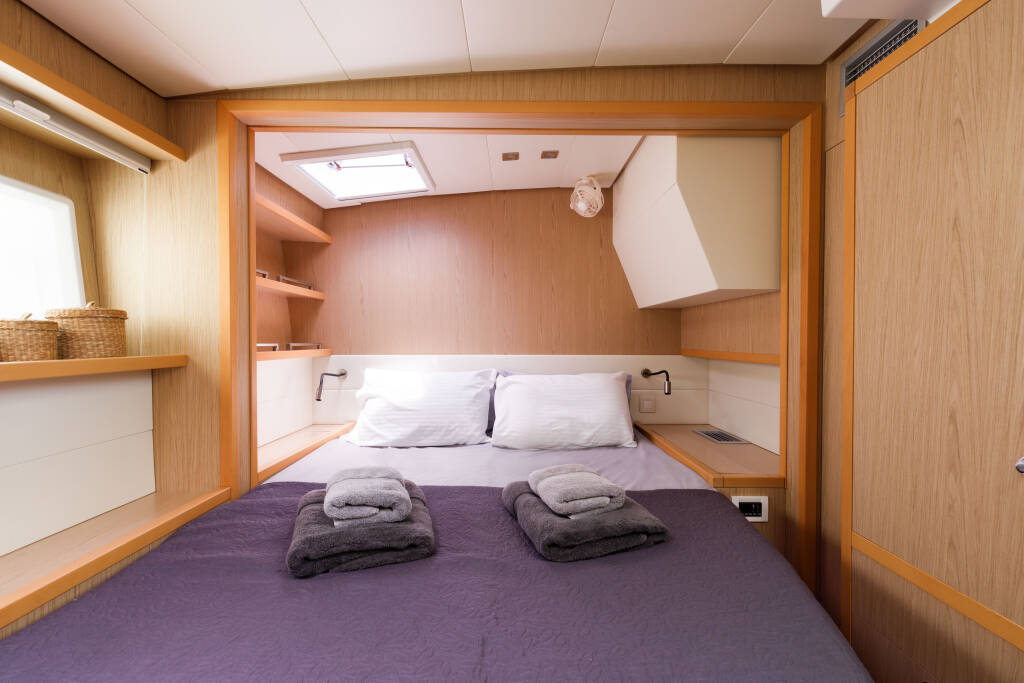 Katamaran Lagoon 52 Kepi, Baujahr 2014, liegt im Lavrion - Olympic Marine, Athens area/Saronic/Peloponese, Griechenland vor Anker. Es verfügt über 5 + 2 Kabinen und bietet Platz für 10 + 2 Personen mit 5 + 1 Toiletten.