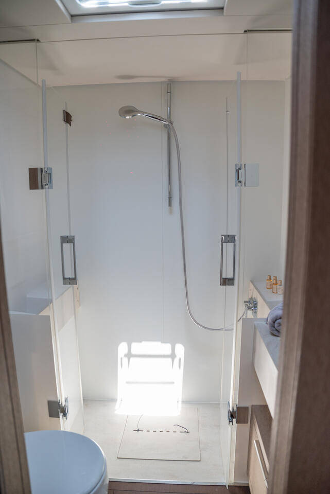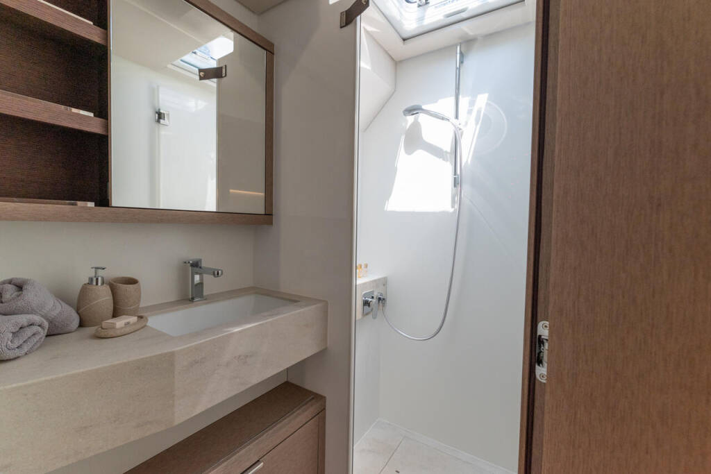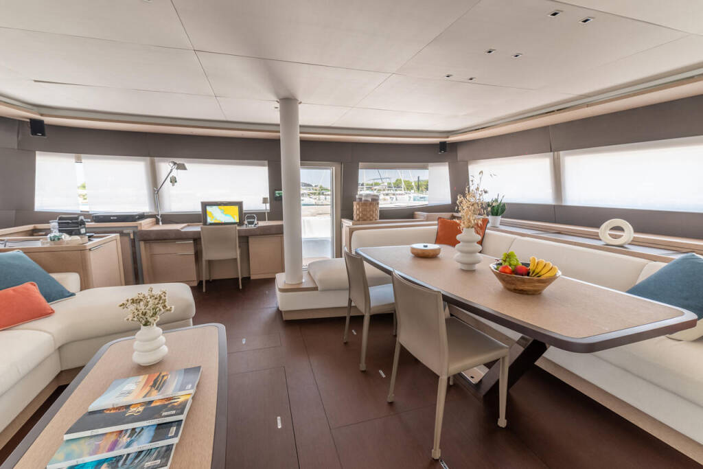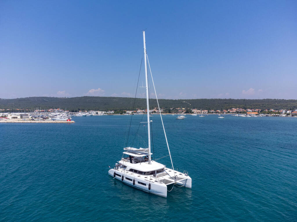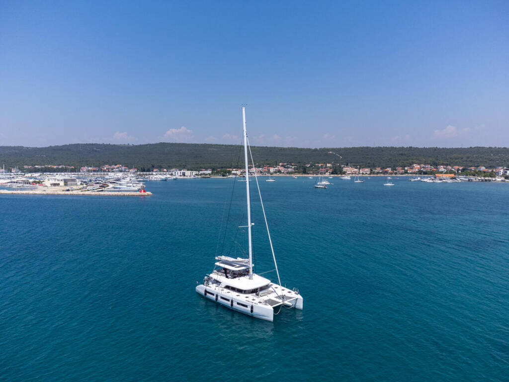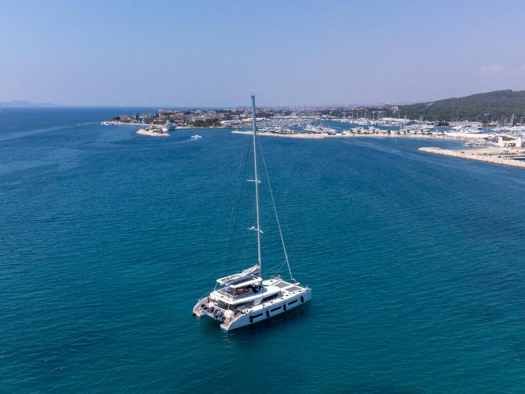 Katamaran Lagoon Sixty 5 Seaductive Orca, Baujahr 2024, liegt im Split Harbour, Split & Umgebung, Kroatien vor Anker. Es verfügt über 4 + 3 Kabinen und bietet Platz für 8 + 3 Personen mit 4 + 1 Toiletten.
