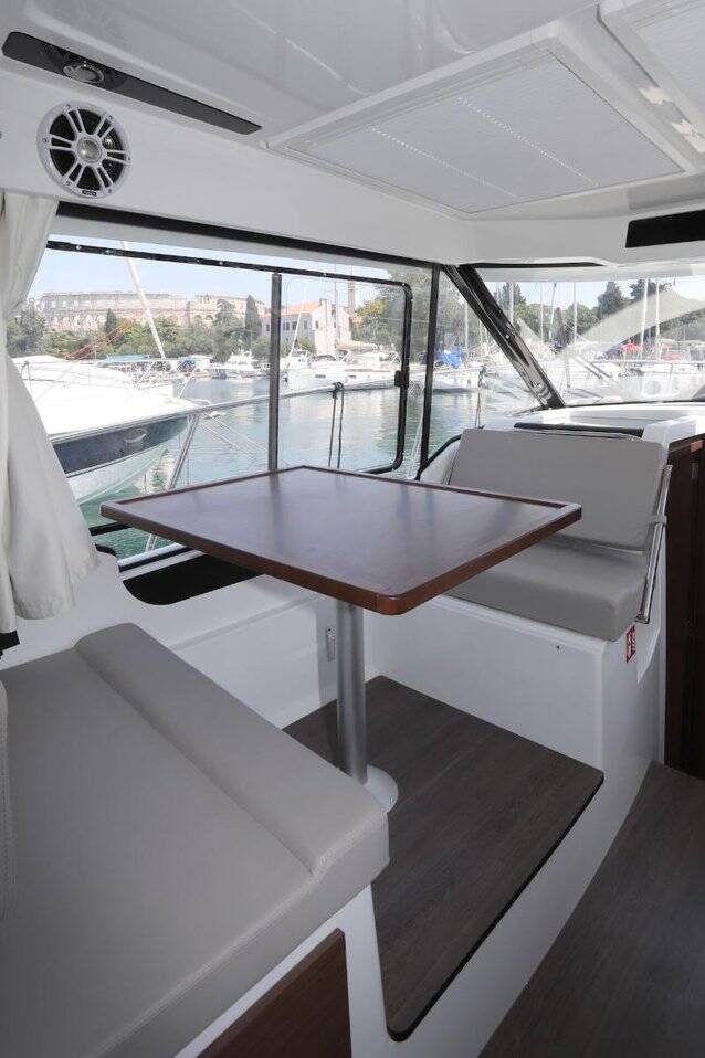 Motorboot Merry Fisher 895 Ema, Baujahr 2023, liegt im ACI Marina Pula, Istrien, Kroatien vor Anker. Es verfügt über 2 Kabinen und bietet Platz für 4 + 2 Personen mit 1 Toiletten.