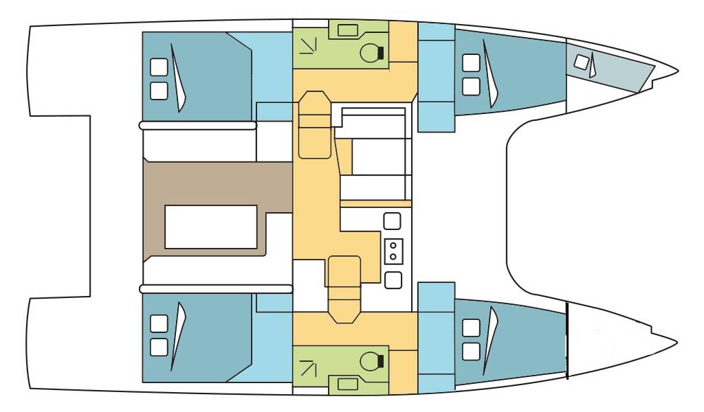 Katamaran Nautitech 40 Open KRIBI, Baujahr 2022, liegt im St. Martin, Marina de L'Anse Marcel, St. Martin, Karibik vor Anker. Es verfügt über 4 + 1 Kabinen und bietet Platz für 8 + 2 + 1 Personen mit 2 Toiletten.