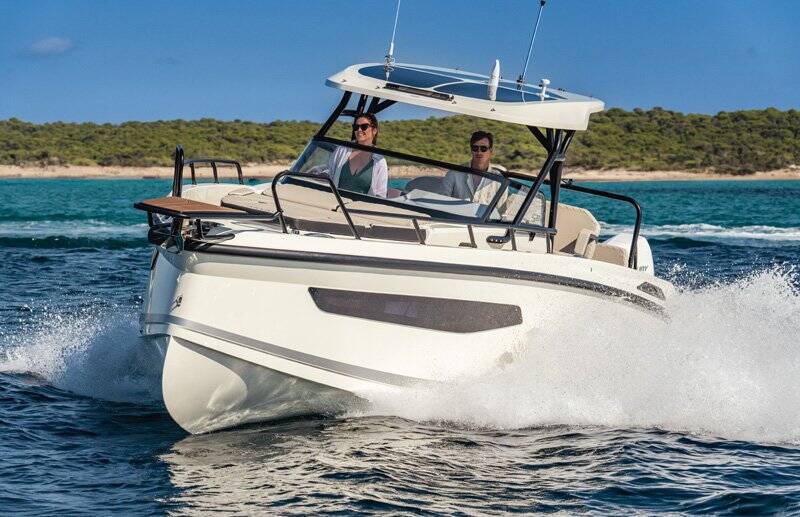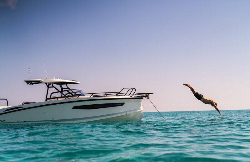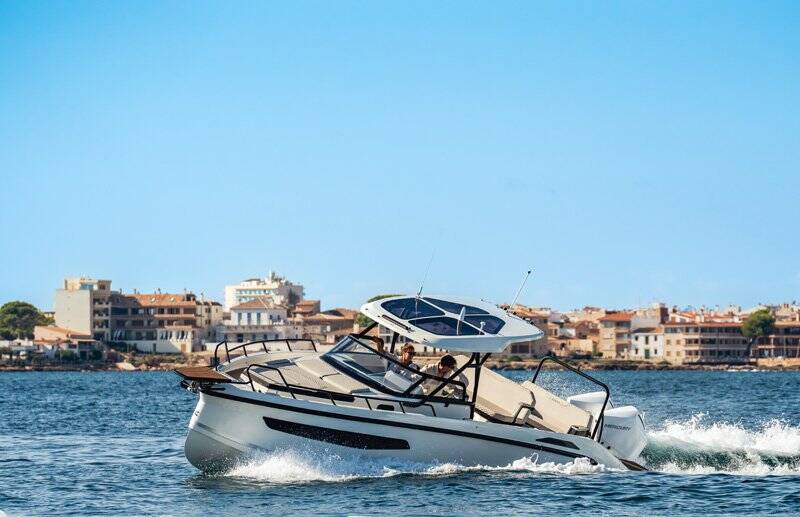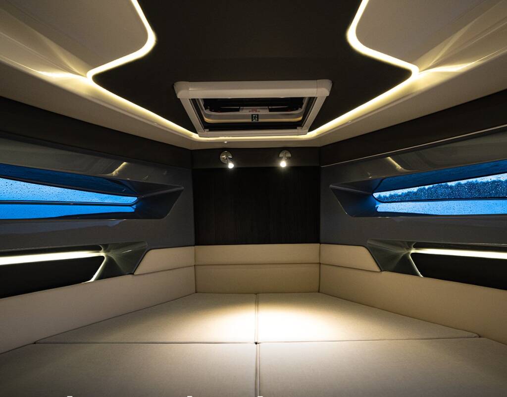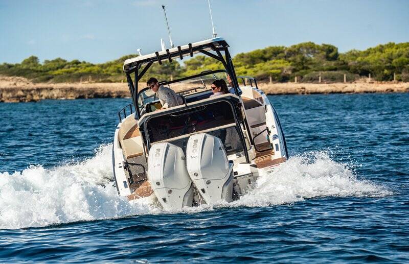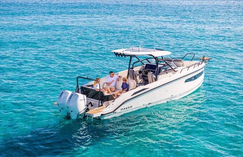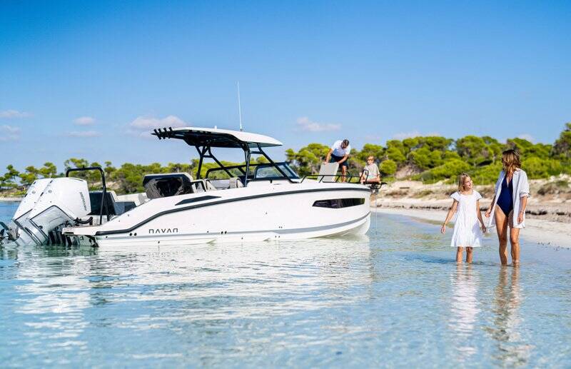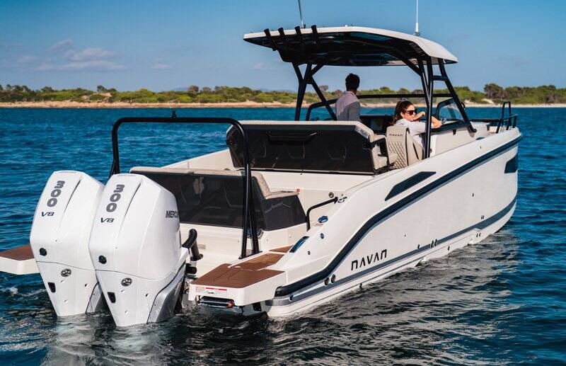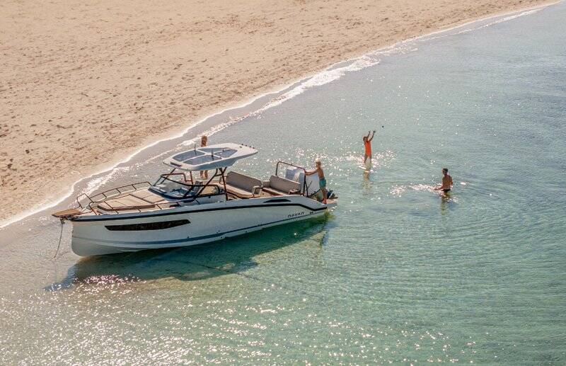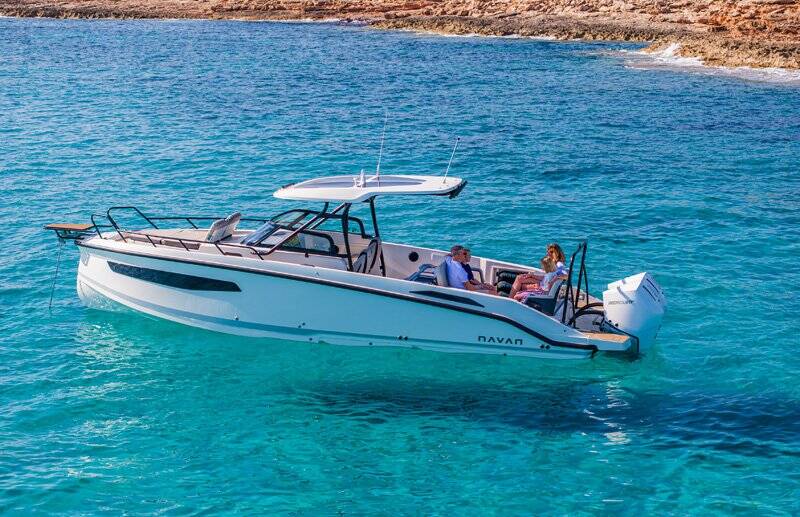 Motorboot Navan S30 NN, Baujahr 2025, liegt im Marina di Cannigione, Sardinien, Italien vor Anker. Es verfügt über 1 Kabinen und bietet Platz für 2 Personen mit 1 Toiletten.