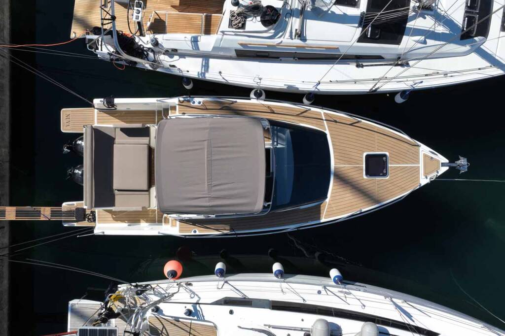 Motorboot Nuva M9 Cabin Babac, Baujahr 2024, liegt im Marina Kornati, Biograd, Zadar & Umgebung, Kroatien vor Anker. Es verfügt über 1 Kabinen und bietet Platz für 2 + 2 Personen mit 1 Toiletten.