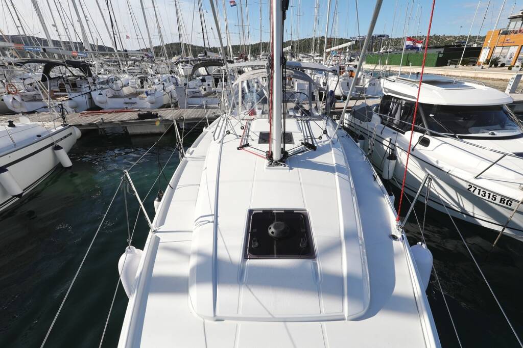 Segelyacht Oceanis 34.1 Rooster, Baujahr 2023, liegt im Marina Pirovac, Sibenik & Umgebung, Kroatien vor Anker. Es verfügt über 3 Kabinen und bietet Platz für 6 + 2 Personen mit 1 Toiletten.