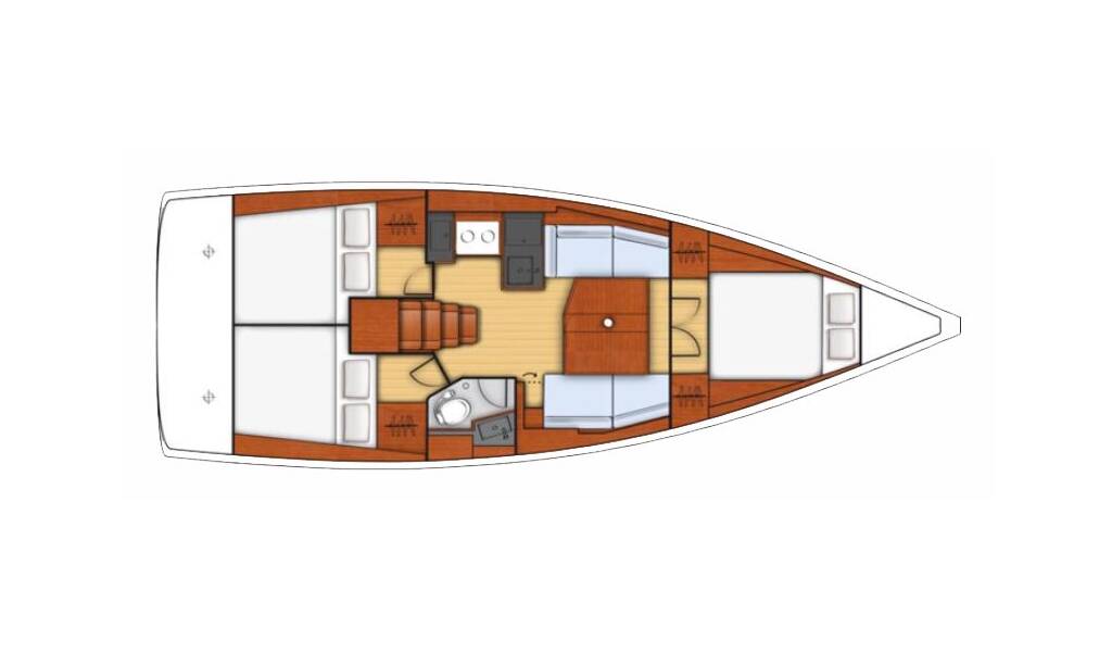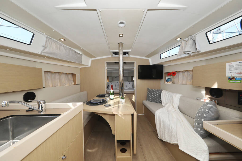 Segelyacht Oceanis 38.1 Angel07, Baujahr 2020, liegt im Marina Kornati, Biograd, Zadar & Umgebung, Kroatien vor Anker. Es verfügt über 3 Kabinen und bietet Platz für 6 + 2 Personen mit 1 Toiletten.