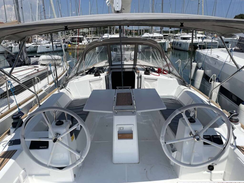 Segelyacht Oceanis 38.1 Gwada, Baujahr 2023, liegt im Marina Tehnomont Veruda, Pula, Istrien, Kroatien vor Anker. Es verfügt über 3 Kabinen und bietet Platz für 6 + 1 Personen mit 2 Toiletten.