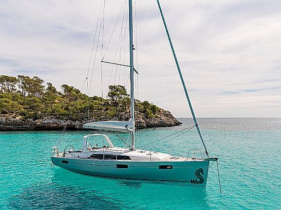 Segelyacht Oceanis 41.1 Diamanti II, Baujahr 2020, liegt im Skiathos, Skiathos/Sporades, Volos, Griechenland vor Anker. Es verfügt über 3 Kabinen und bietet Platz für 6 + 2 Personen mit 2 Toiletten.