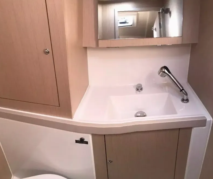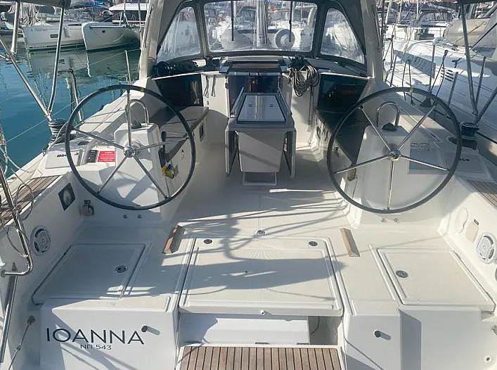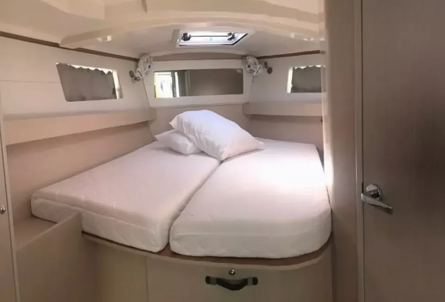 Segelyacht Oceanis 41.1 Ioanna, Baujahr 2020, liegt im Lefkas, D-Marin, Ionisches Meer, Griechenland vor Anker. Es verfügt über 3 Kabinen und bietet Platz für 6 + 2 Personen mit 2 Toiletten.