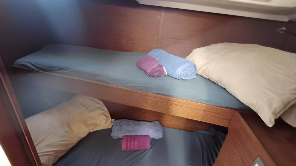 Segelyacht Oceanis 46.1 ELLI K, Baujahr 2023, liegt im Kos, Kos Marina, Dodekanes, Griechenland vor Anker. Es verfügt über 5 Kabinen und bietet Platz für 10 + 2 Personen mit 3 Toiletten.