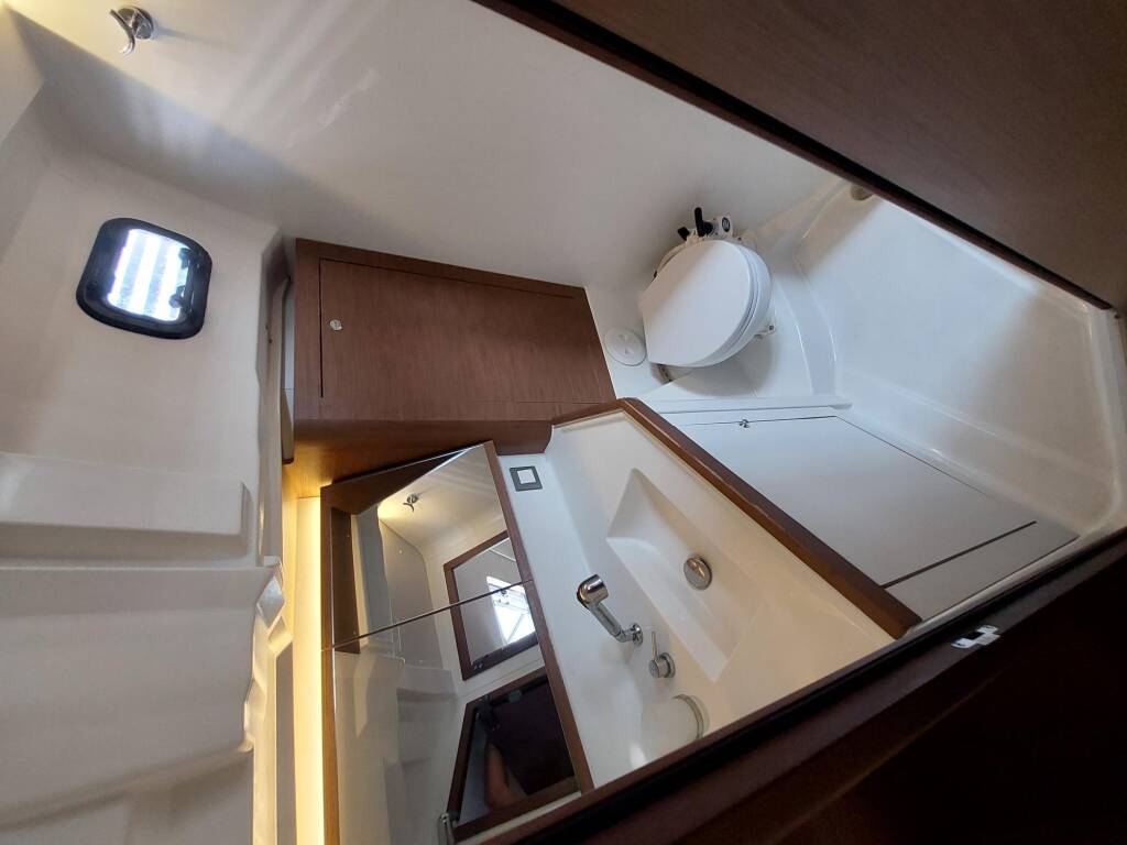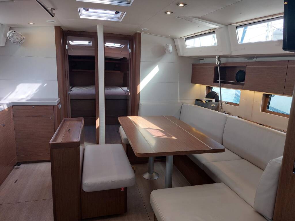 Segelyacht Oceanis 46.1 Kalmi, Baujahr 2020, liegt im Lavrion, main port, Athens area/Saronic/Peloponese, Griechenland vor Anker. Es verfügt über 5 Kabinen und bietet Platz für 10 Personen mit 3 Toiletten.