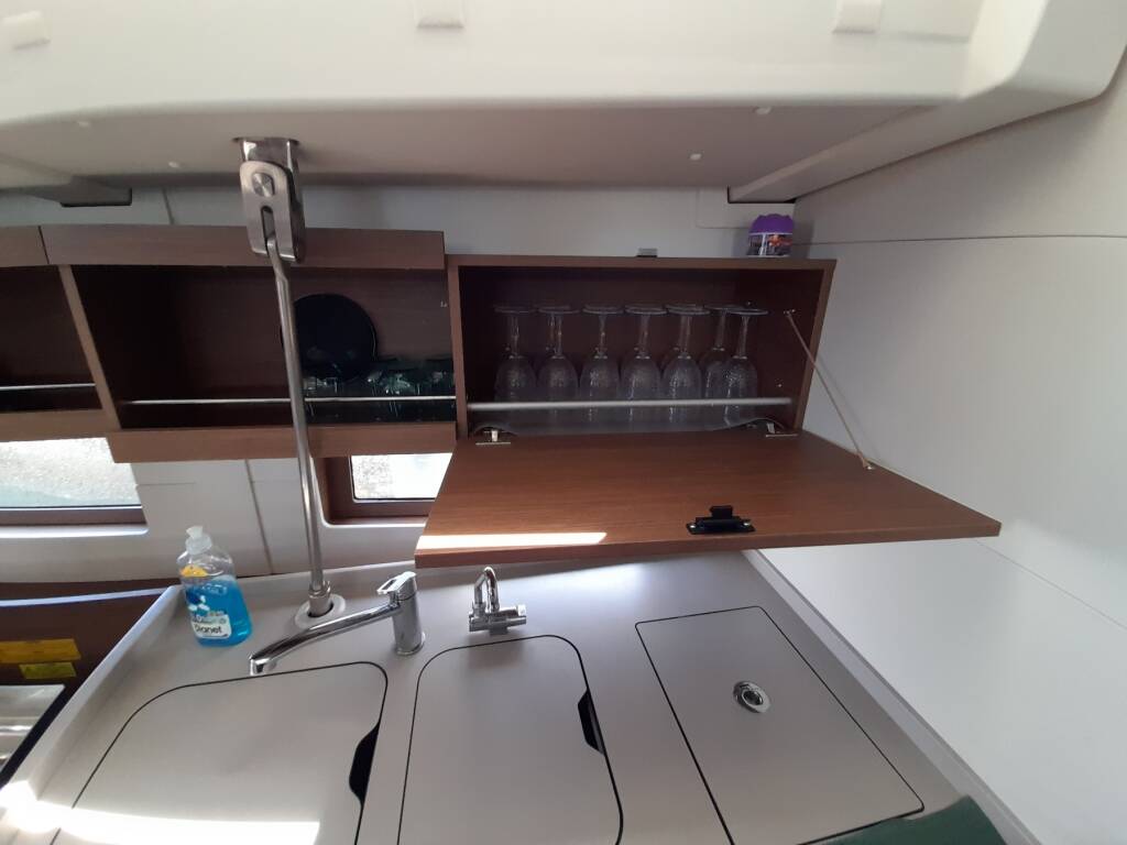 Segelyacht Oceanis 46.1 Okiroi, Baujahr 2020, liegt im Lefkas, D-Marin, Ionisches Meer, Griechenland vor Anker. Es verfügt über 5 Kabinen und bietet Platz für 10 Personen mit 3 Toiletten.