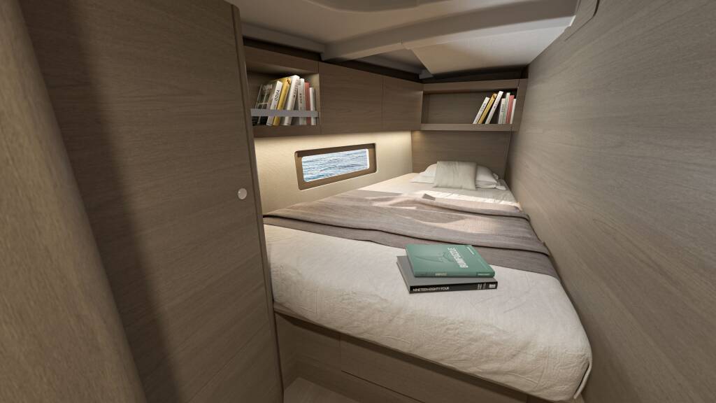Segelyacht Oceanis 47 Tempranillo, Baujahr 2026, liegt im Trogir, Yachtclub Seget (Marina Baotić), Split & Umgebung, Kroatien vor Anker. Es verfügt über 5 Kabinen und bietet Platz für 10 + 2 Personen mit 3 Toiletten.