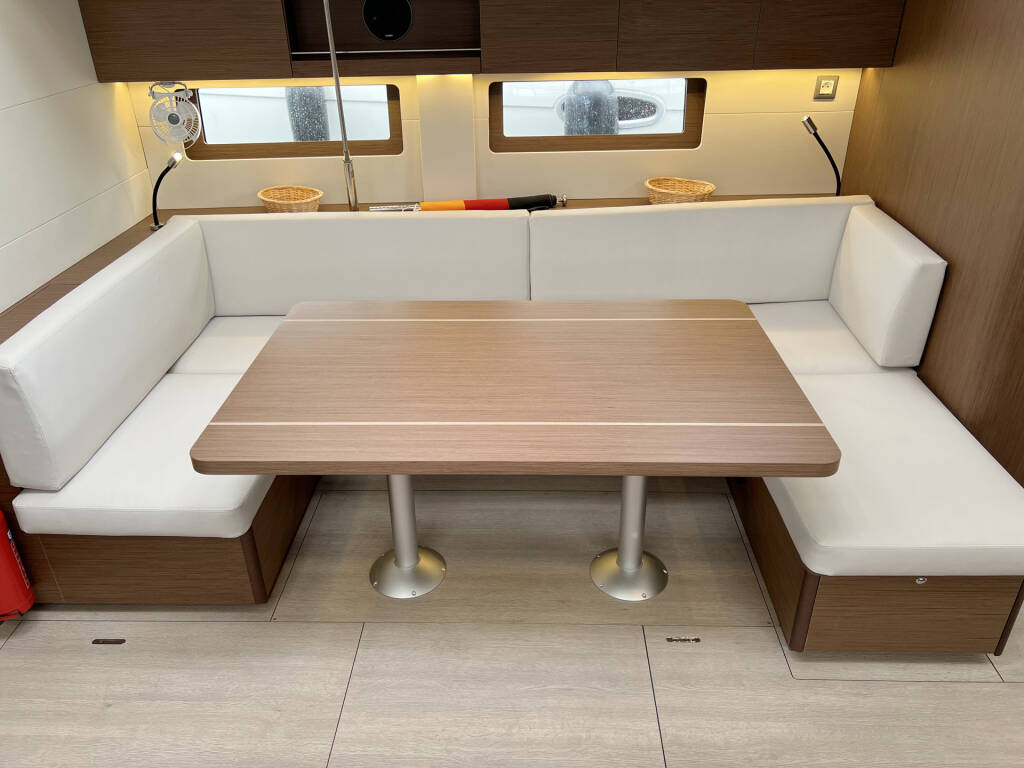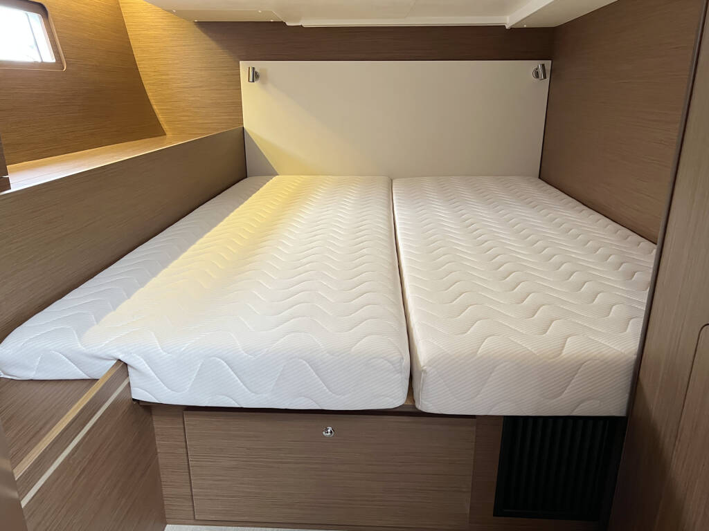 Bugschutz aus Edelstahl, Schutzvorrichtung am Heckspiegel, Cockpitbankverlängerungen, Cockpittisch mit Handlauf aus Edelstahl und Beleuchtung und Einbau-Kühlbox 15 L, Halterung für den Außenborder, Doppelkoje im Salon, Fußpumpe Seewasser/Frischwasser, Eisschrank 85 Liter mit Öffnung von oben, Kühlschrank 130 Liter (12 V) mit Öffnung vorne, Lüfter in allen Kabinen und im Salon, Indirekte LED-Beleuchtung, Zusätzliche Wassertanks 330 L (insgesamt 770 L), Hifi: Fusion + Lautsprecher im Innenraum & Wasserdichte Außenlautsprecher, Fliegengitter vor den Fenstern, 2 Genuawinschen, Polyester-Bugplattform mit Ankerrolle und Wasserstag (zum Anschlagen des Gennakers), German System (Großschot mit Klappläufer am Steuerstand), Traveller-Schiene für die Genuaschot, Mittelklampen, Sonnenpolster für Niedergang, aufstellbares Fenster Achterkabine, Teak Scheuerleiste, Cockpitdusche (warm/kalt), Ankerspillsteuerung mit Zähler vom Cockpit bedienbar, Relingsdurchstieg, Teak auf Sonnenliegen