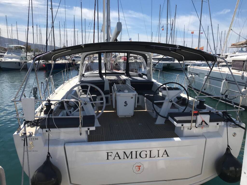 Segelyacht Oceanis 51.1 Famiglia, Baujahr 2019, liegt im Athens, Alimos marina, Athens area/Saronic/Peloponese, Griechenland vor Anker. Es verfügt über 5 + 1 Kabinen und bietet Platz für 10 + 2 Personen mit 3 + 1 Toiletten.