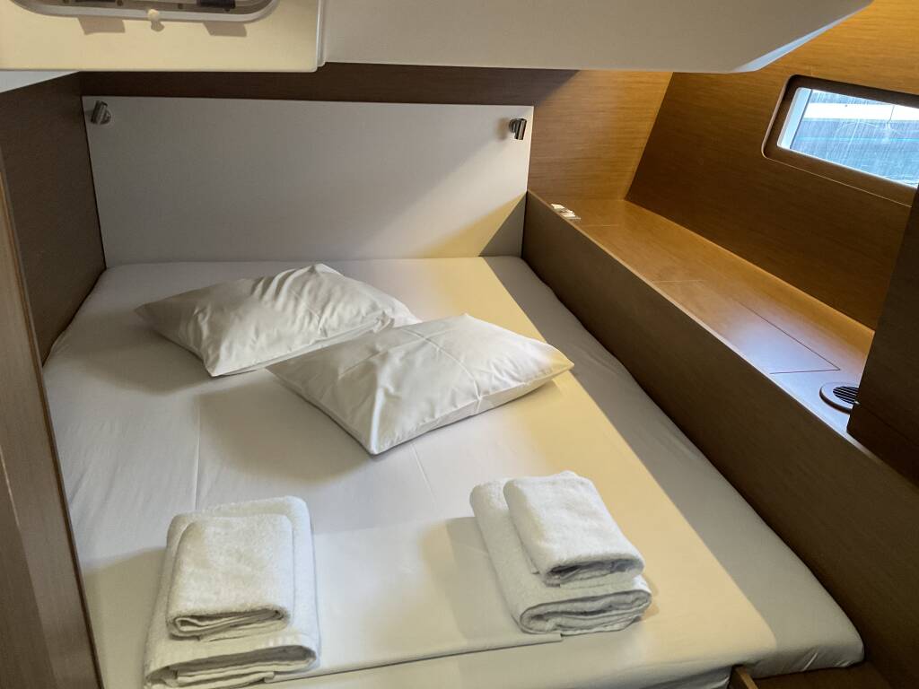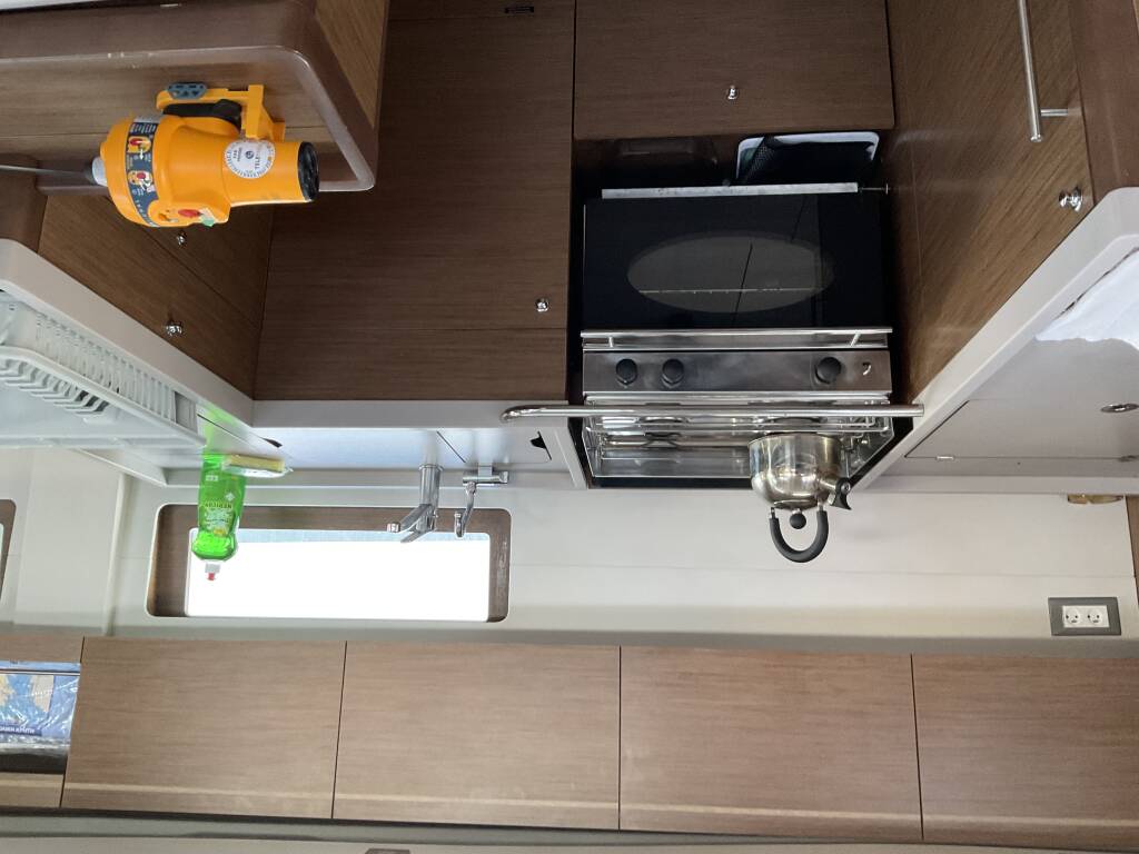 Segelyacht Oceanis 51.1 Retsina, Baujahr 2020, liegt im Lefkas main port, Ionisches Meer, Griechenland vor Anker. Es verfügt über 5 + 1 Kabinen und bietet Platz für 10 + 1 + 1 Personen mit 3 + 1 Toiletten.