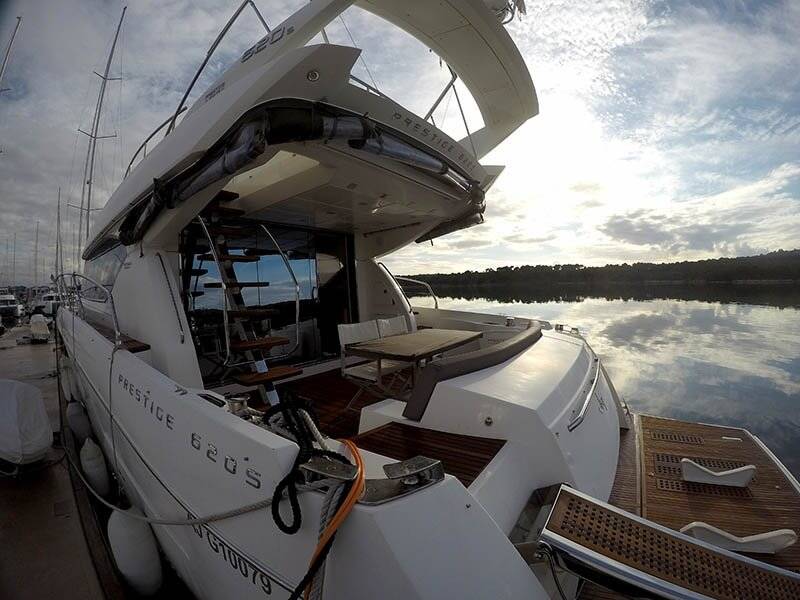 Motoryacht Prestige 620 S Jana, Baujahr 2016, liegt im Marina Mandalina, Sibenik, Sibenik & Umgebung, Kroatien vor Anker. Es verfügt über 3 + 1 Kabinen und bietet Platz für 6 + 1 Personen mit 3 + 1 Toiletten.
