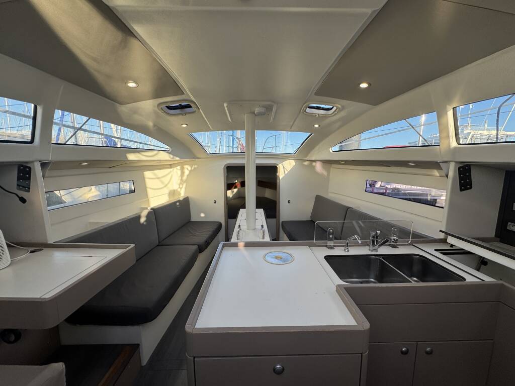 Segelyacht RM 1070 Xavier, Baujahr 2017, liegt im French Atlantic, La Rochelle, Poitou-Charentes, Frankreich vor Anker. Es verfügt über 2 Kabinen und bietet Platz für 4 + 2 Personen mit 1 Toiletten.