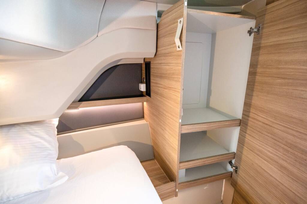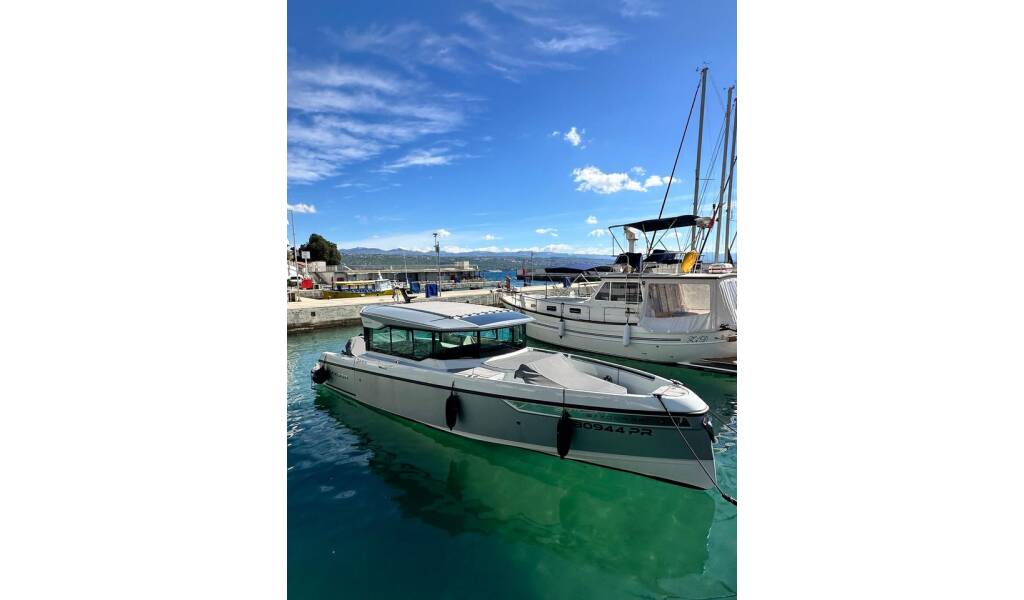 Motorboot Saxdor 320 GTC Navtia, Baujahr 2023, liegt im Marina Admiral Opatija, Kvarner, Kroatien vor Anker. Es verfügt über 2 Kabinen und bietet Platz für 4 Personen mit 1 Toiletten.
