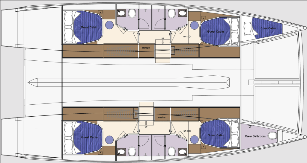 Katamaran Seaview 50 Tradition, Baujahr 2025, liegt im Bahamas, Abacos, Boat Harbour Marina, Abaco Islands, Bahamas, Bahamas vor Anker. Es verfügt über 4 Kabinen und bietet Platz für 8 Personen mit 4 Toiletten.