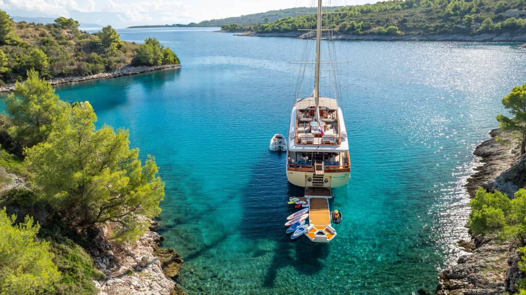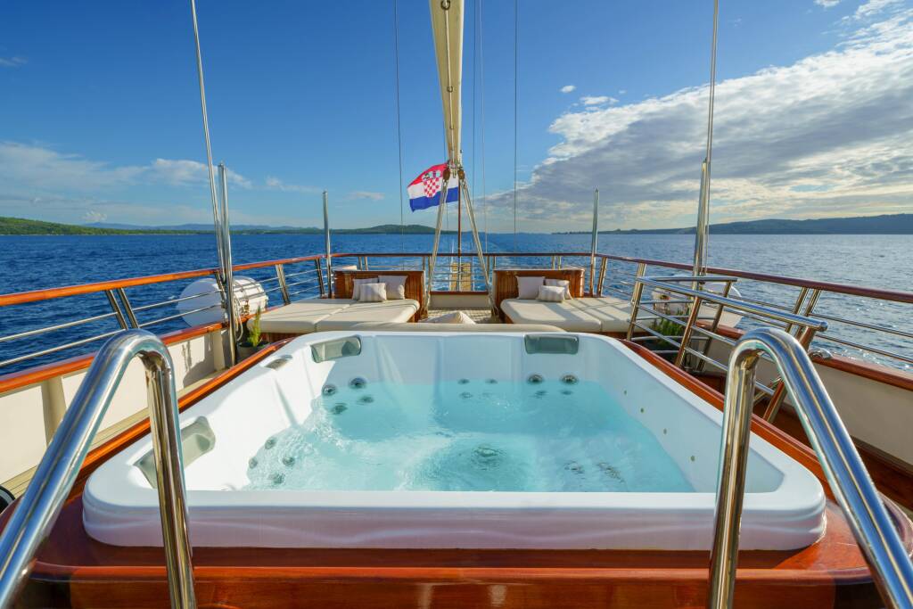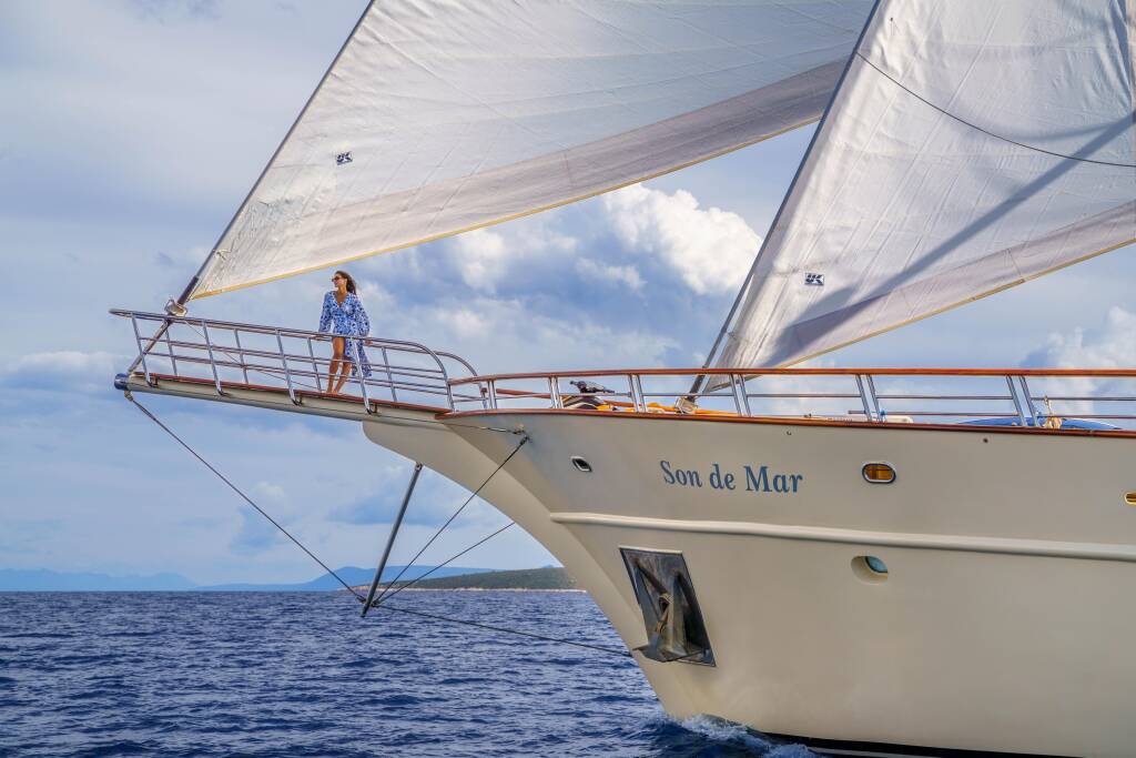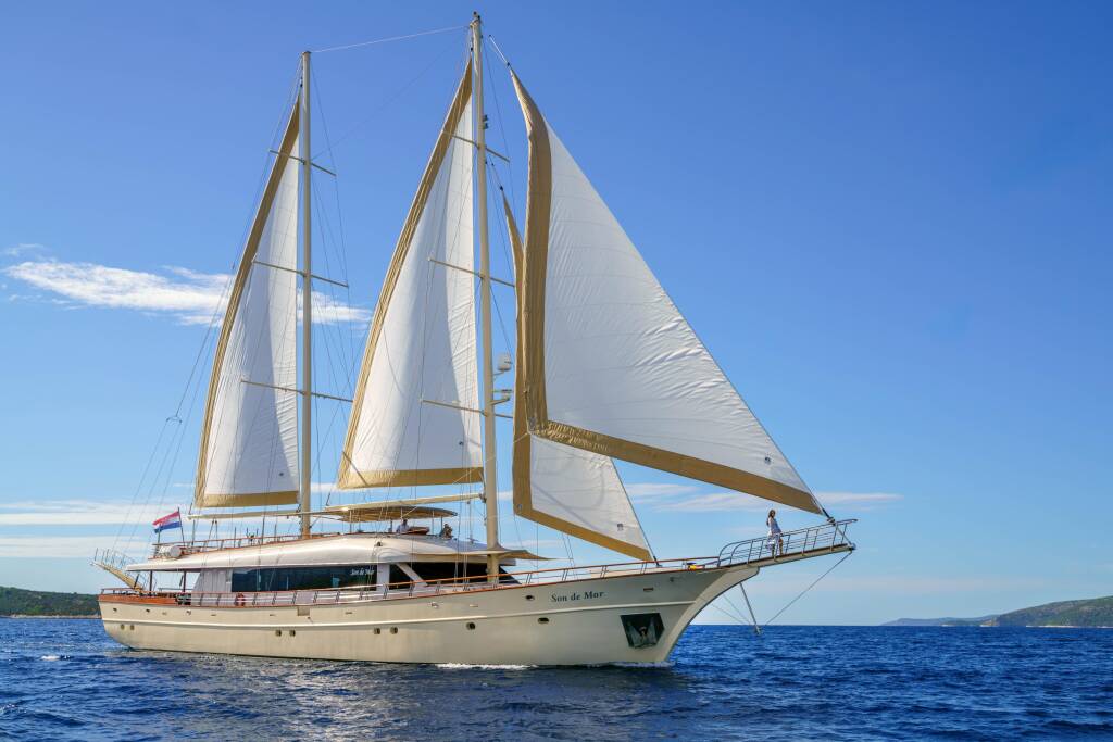 Gulet Son De Mar Son De Mar, Baujahr 2019, liegt im Split Harbour, Split & Umgebung, Kroatien vor Anker. Es verfügt über 6 Kabinen und bietet Platz für 12 Personen mit 6 Toiletten.