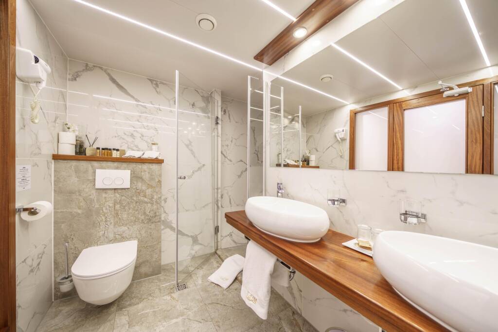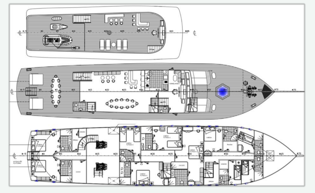 - Unterkunft für maximal 12 Gäste in 6 Kabinen