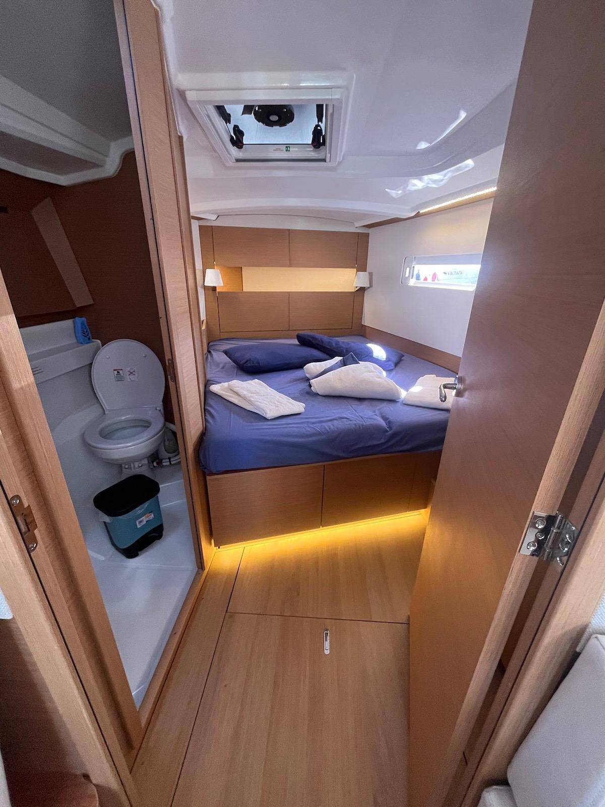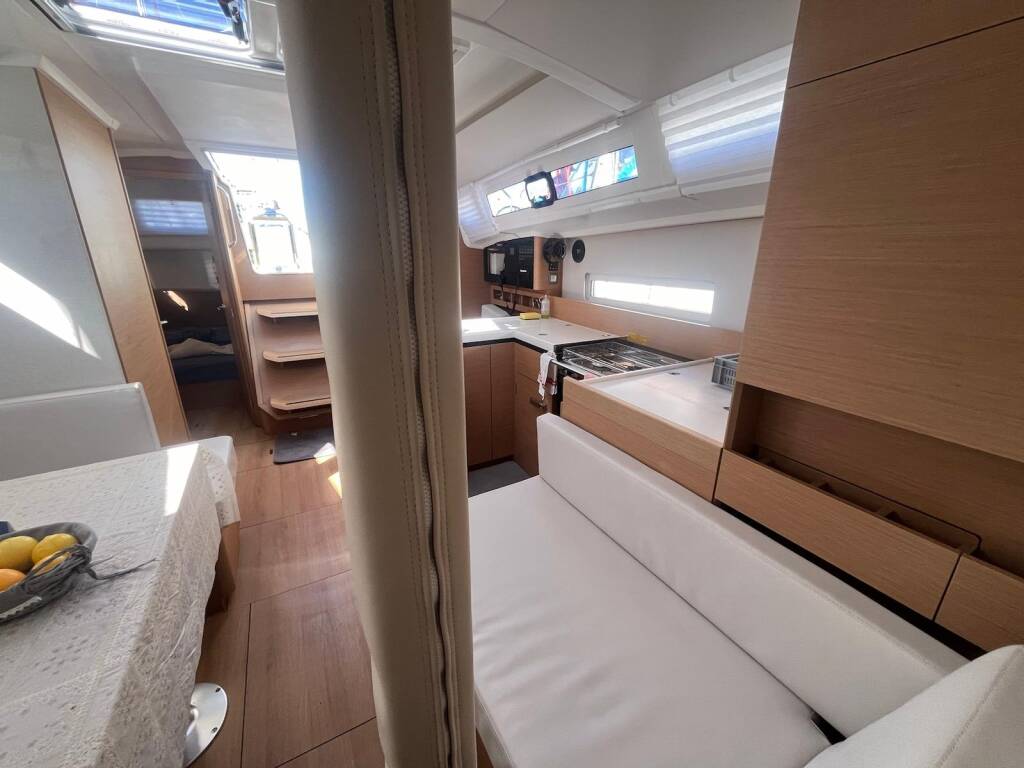 Segelyacht Sun Odyssey 410 Brasilia, Baujahr 2024, liegt im Sardinien, Cannigione, Sardinien, Italien vor Anker. Es verfügt über 3 Kabinen und bietet Platz für 6 + 2 Personen mit 2 Toiletten.