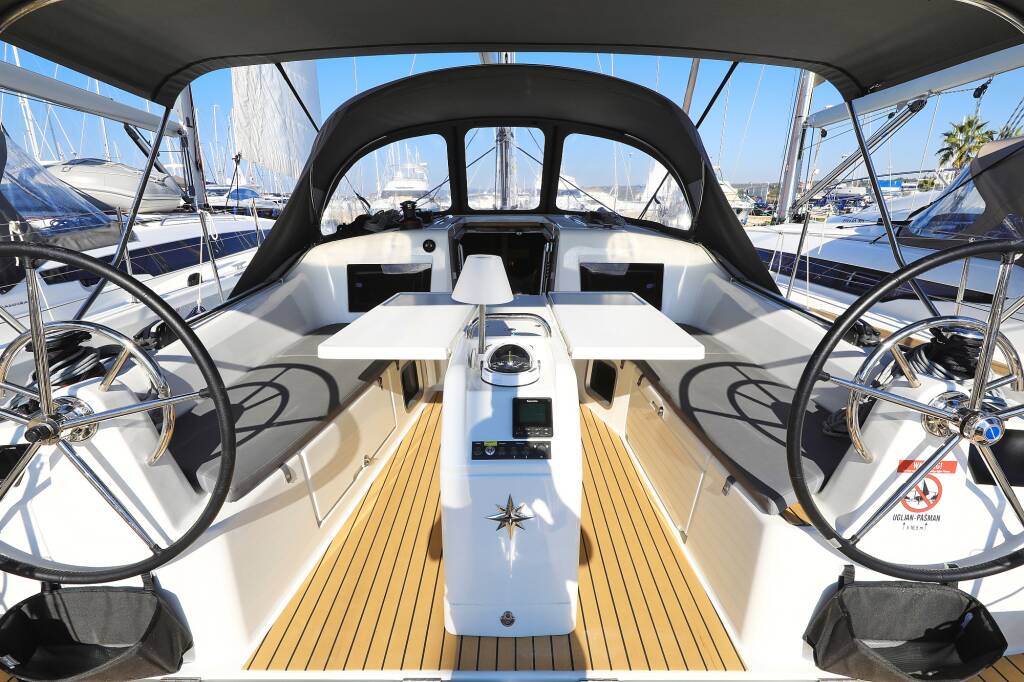 Segelyacht Sun Odyssey 410 Diona, Baujahr 2021, liegt im Marina Kornati, Biograd, Zadar & Umgebung, Kroatien vor Anker. Es verfügt über 3 Kabinen und bietet Platz für 6 + 2 Personen mit 2 Toiletten.