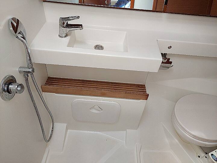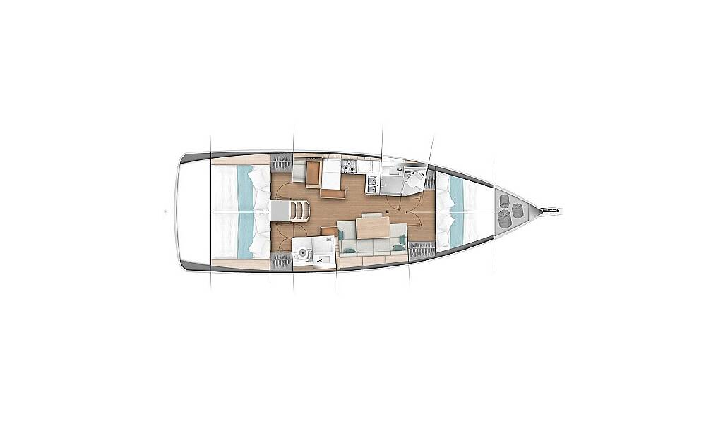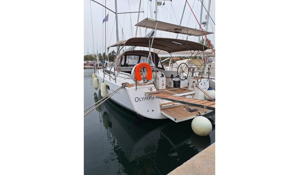 Segelyacht Sun Odyssey 440 Olympia, Baujahr 2020, liegt im Athens, Alimos marina, Athens area/Saronic/Peloponese, Griechenland vor Anker. Es verfügt über 4 Kabinen und bietet Platz für 8 + 2 Personen mit 2 Toiletten.