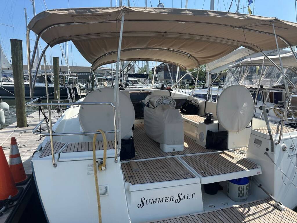 Segelyacht Sun Odyssey 440 Summer Salt, Baujahr 2018, liegt im Annapolis, Chesapeake Bay, Chesapeake Bay, USA vor Anker. Es verfügt über 3 Kabinen und bietet Platz für 6 Personen mit 2 Toiletten.
