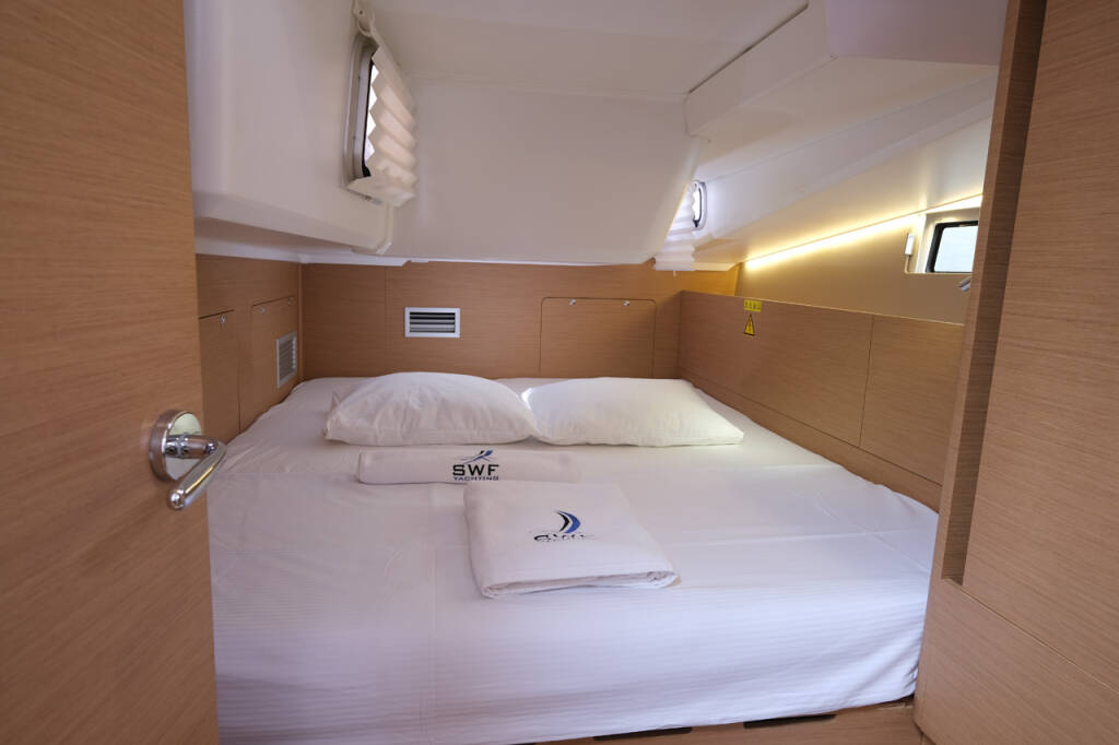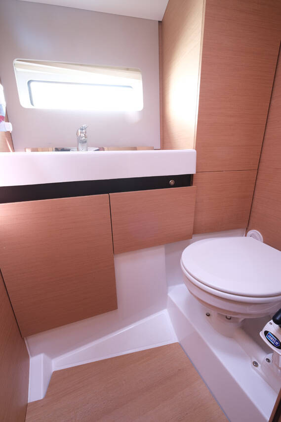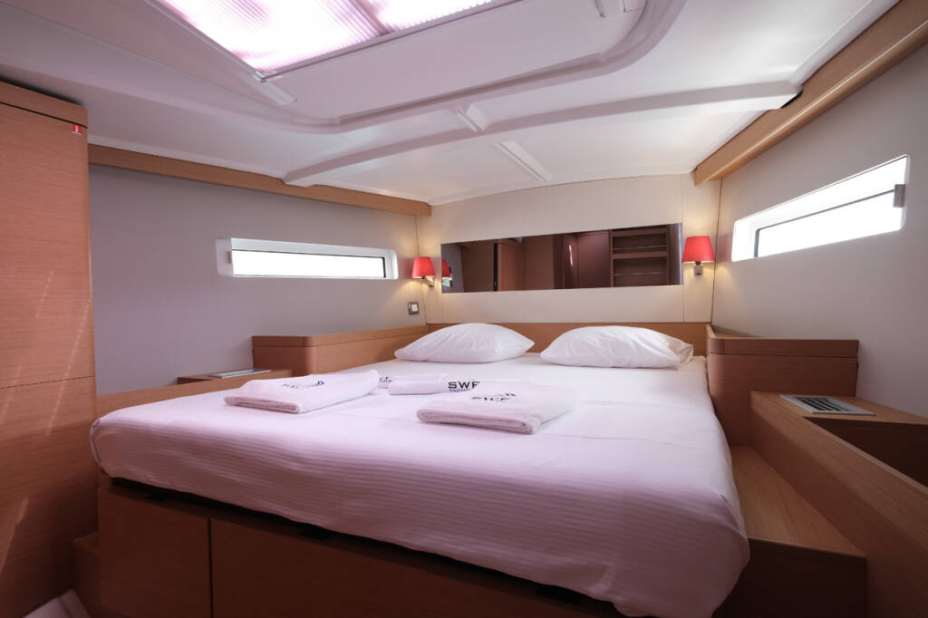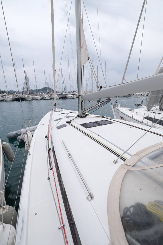 Segelyacht Sun Odyssey 490 La Vita e Bella, Baujahr 2018, liegt im Göcek, Aegean, Türkei vor Anker. Es verfügt über 3 Kabinen und bietet Platz für 6 Personen mit 2 Toiletten.