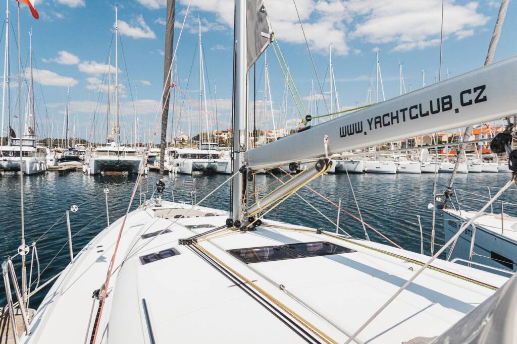 Segelyacht Sun Odyssey 490 Nonna, Baujahr 2019, liegt im Marina Mandalina, Sibenik, Sibenik & Umgebung, Kroatien vor Anker. Es verfügt über 5 + 1 Kabinen und bietet Platz für 10 + 2 + 1 Personen mit 5 Toiletten.